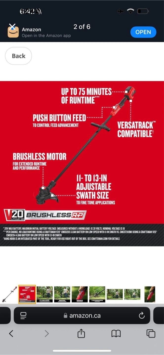 New in box Retails 169$ BRUSHLESS MOTOR: Up to 80% more runtime** and up to 75 minutes of runtime*** FINE TUNE APPLICATIONS: 11-in. to 13-in. Adjustable Swath Size COMPACT DESIGN: Ip to 82% lighter than gas**** and compact design for maneuverability PUSH BUTTON FEED: Designed to help control feed advancement WEATHERGUARD TECHNOLOGY: Designed to help protect the tool from moisture and dust. Applies to tool only, does not apply to battery or charger. VERSATRACK COMPATIBLE: Use the integrated hook to hang this tool directly on the VERSATRACK Wall Organization System (sold separately)