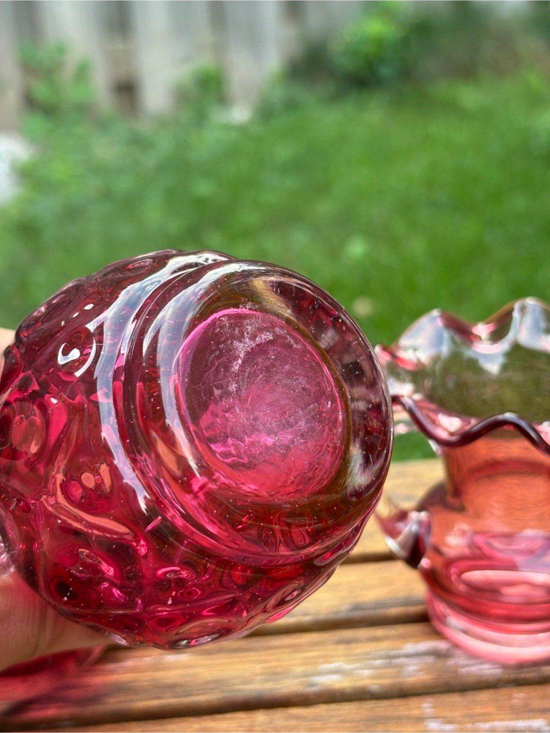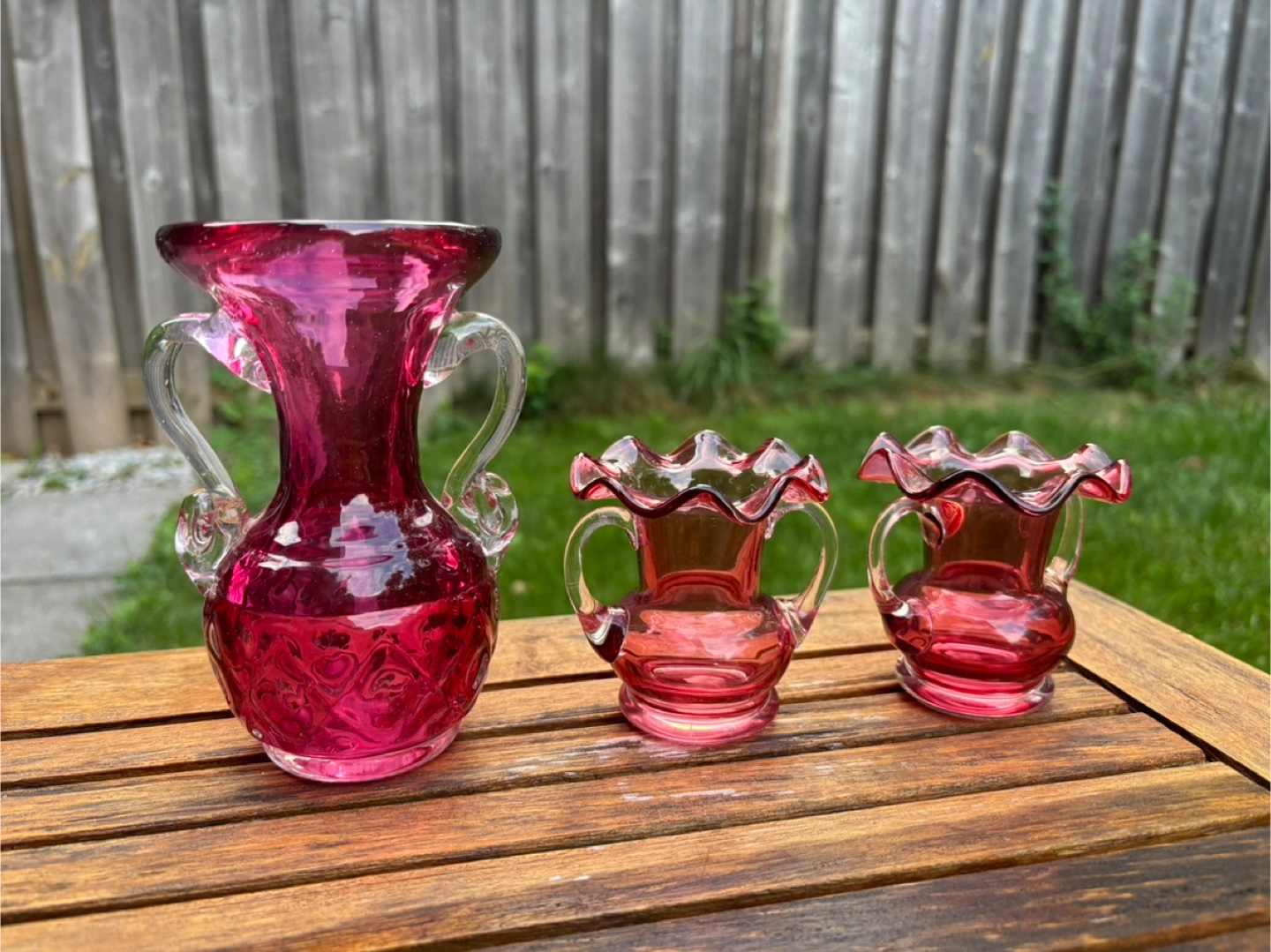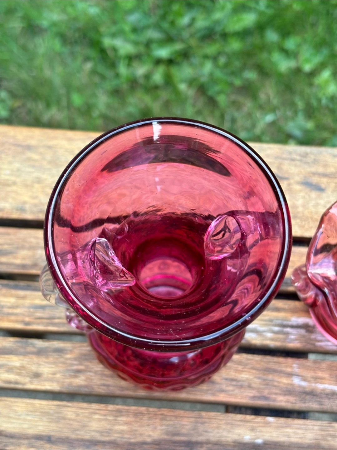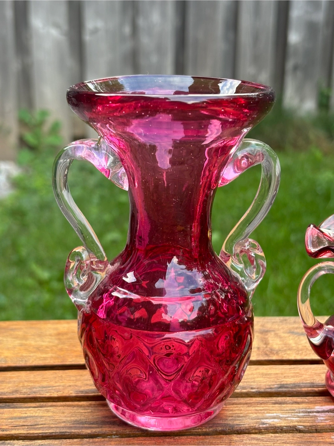 Selling a beautiful Webb vase x2! Along with a blown cranberry glass vase with handles No scratches no cracks Sold as a set Can be sold individually