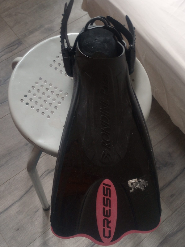 Selling a pair of Cressi Rondinella diving fins. They are black with a pink accent. Great for snorkeling or scuba diving
