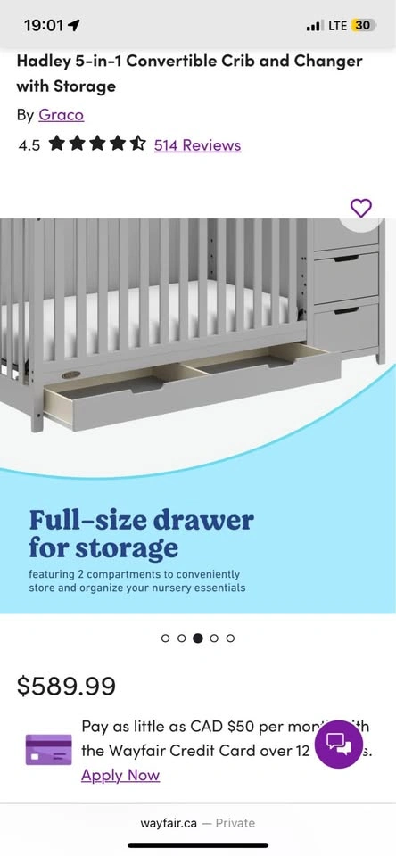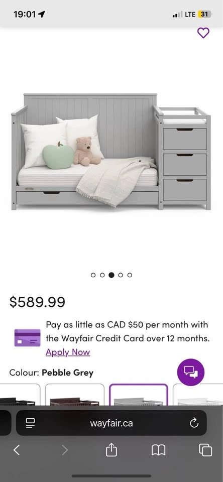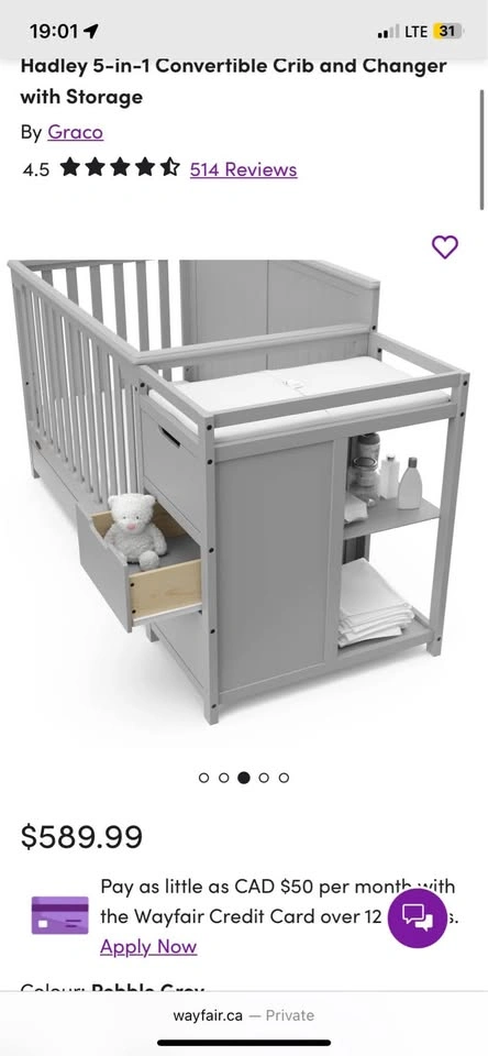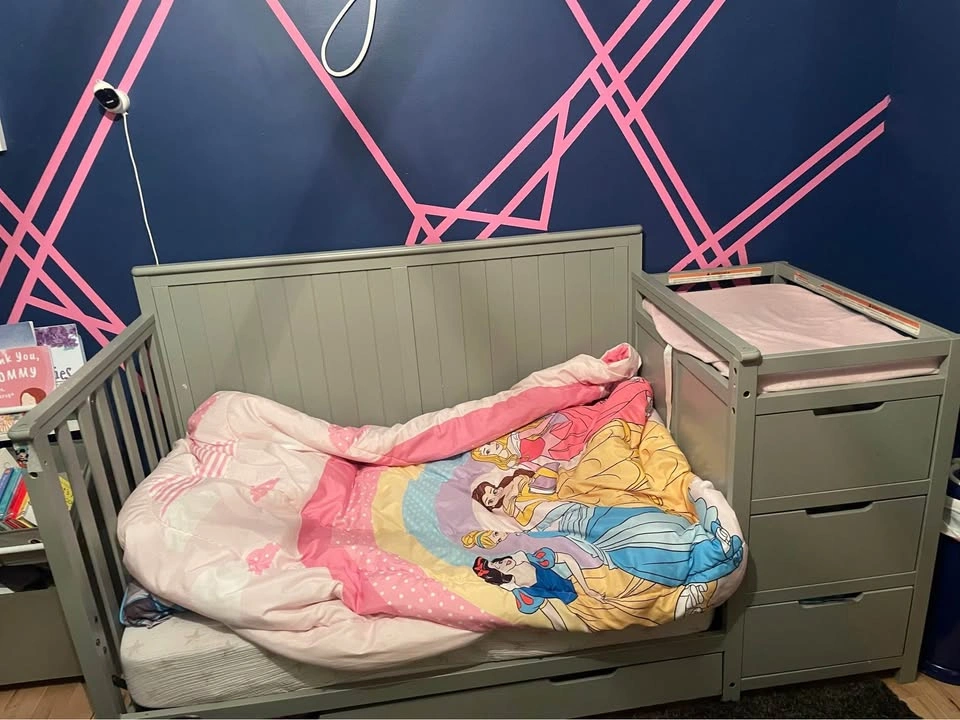 Excellent crib and mattress for sale! Very sturdy and sleek grey design! 3 large drawers under the change table perfect for diapers, wipes ointments, sheets etc! Under the bed drawer was great for even more storage! I love the shelves behind the drawers under the change table as well( used it as my breast feeding station for snacks and waters ) There’s a little bit of damage on the top rails as my teething baby used it as a chew toy ! And a mickey sticker is on the side, but I can try and remove it ! This bed goes from crib, to toddler bed to twin size bed !! What value!! Brand new this crib and mattress would be almost $800 Included will be crib sheets, mattress protector, a changing pad and change pad covers !!! Also included is the instructions for assembly! PICK UP AIRDRIE