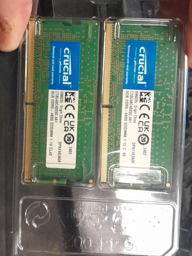 Selling two sticks of Crucial 8GB DDR5-4800 SODIMM RAM. - 8GB DDR5-4800 SODIMM - 1.1V