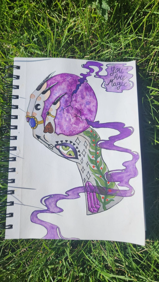 This captivating crystal ball gouache painting blends alcohol markers and micron pens to create a surreal, eye-catching piece of art. Here are some details about the painting: Medium: Gouache, alcohol markers, micron pens Size: 5.5" 8.5"