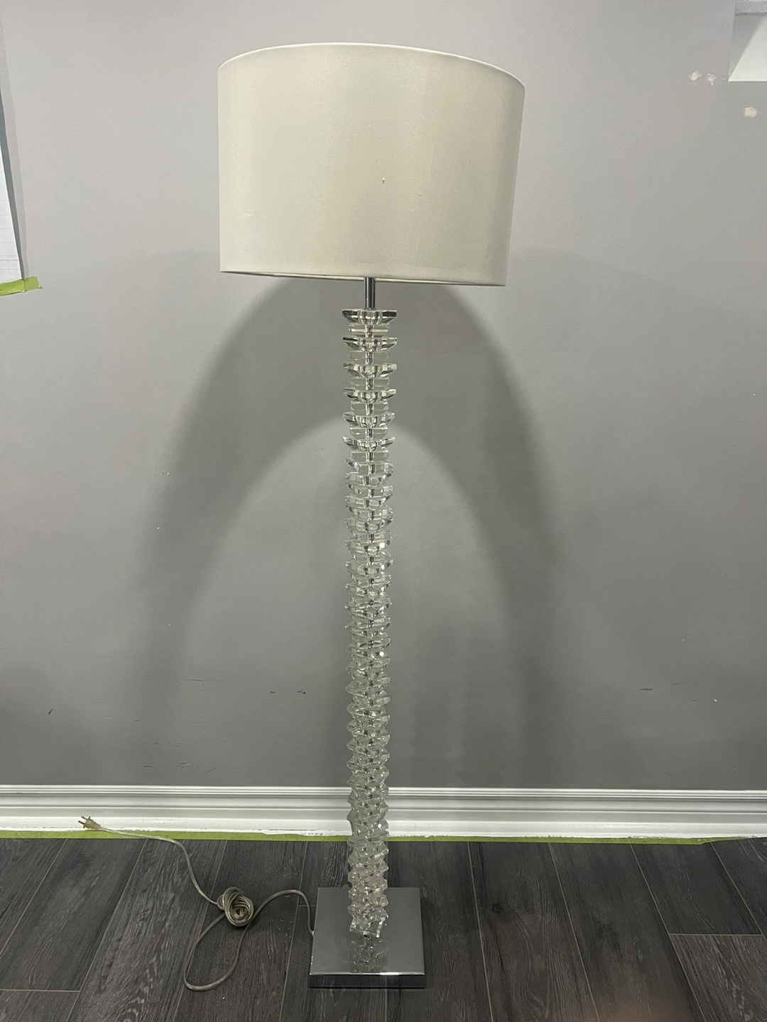 Floor lamp with white lampshade. Crystal design. Includes cord and plug. Stunning!