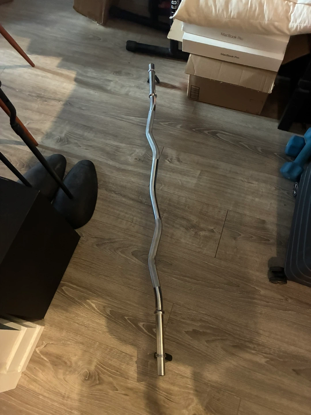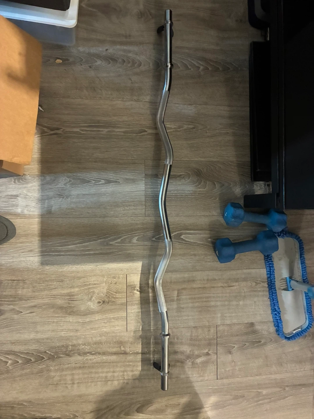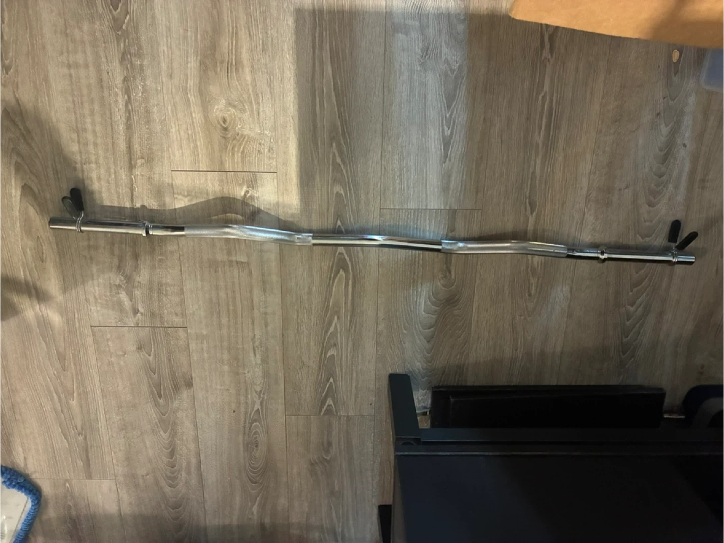 Non slip/easy grip Curl bar - 47”+ 2 spring collars