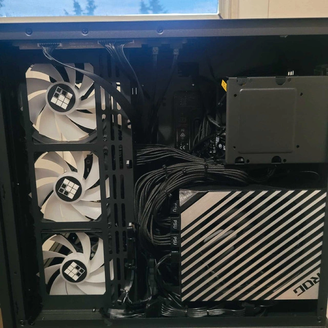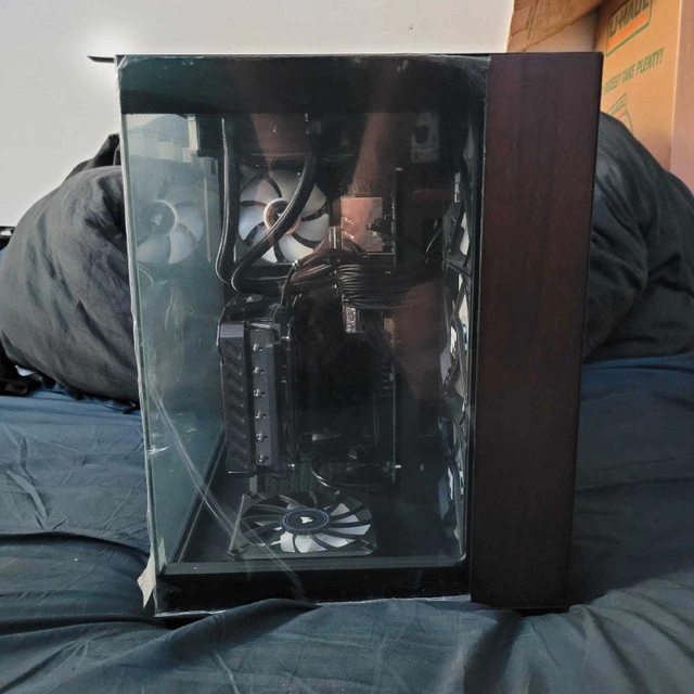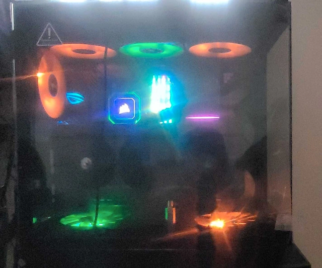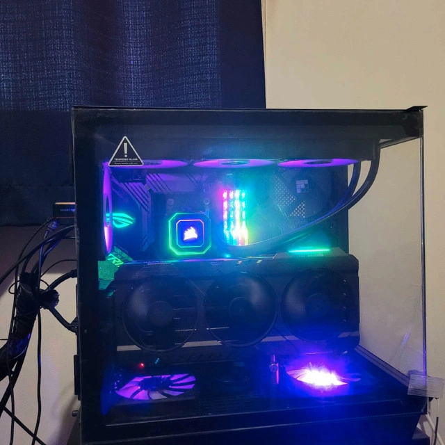 Freshly case swapped with the plastic still on the glass! Selling a custom-built gaming PC featuring an AMD Ryzen 9 5900X processor and a Radeon RX 6900 XT graphics card. It includes Corsair components, an Enmotus FuzeDrive SLC Hybrid SSD 1.6TB PRO Gaming M.2 Gen 3 PCIe NVMe, dedicated to programs and games, and a Samsung 980 Pro 500GB dedicated to the operating system. Also features 32GB of G Skill Trident Z Royal, Corsair fans and an AiO CPU cooler. What you won't find in this build: NZXT, Gigabyte, spinny slow hard drives, or 2.5" SSDs. It has never been overclocked other than XMP ram profiles. What you will find: ASUS components, CPU liquid cooling, Corsair, Samsung 980 Pro 500GB, and an Enmotus FuzeDrive 1.6TB. It's ready to go, just log into Steam and start playing (after downloading your game, of course!). The X570 offers more PCIe 4.0 lanes and generally has better overclocking capabilities and more connectivity options than B550.