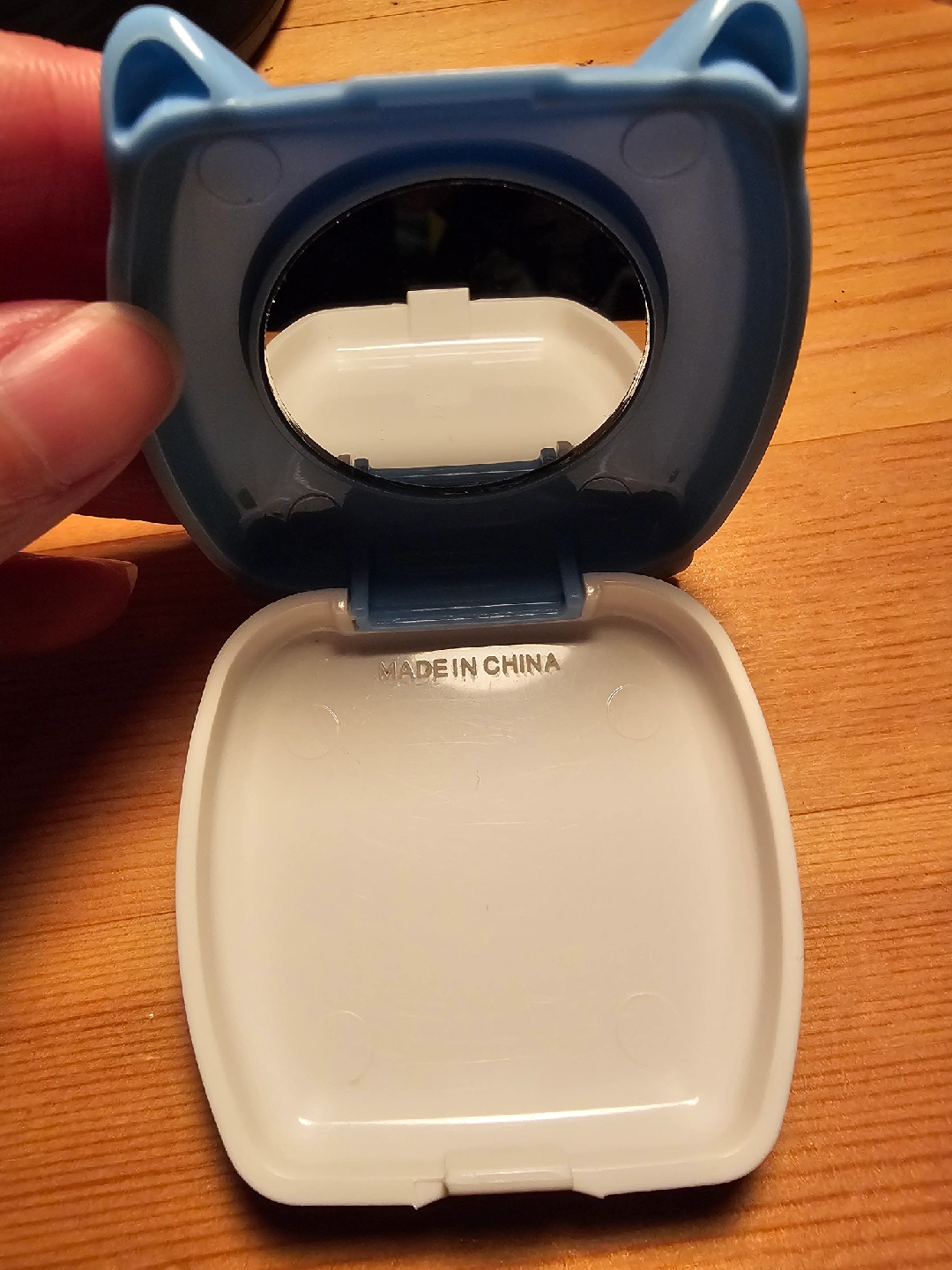 A super cute little piggy compact mirror. It is also built to be able to hold a small powder puff or any other small travel items for easy touch up!