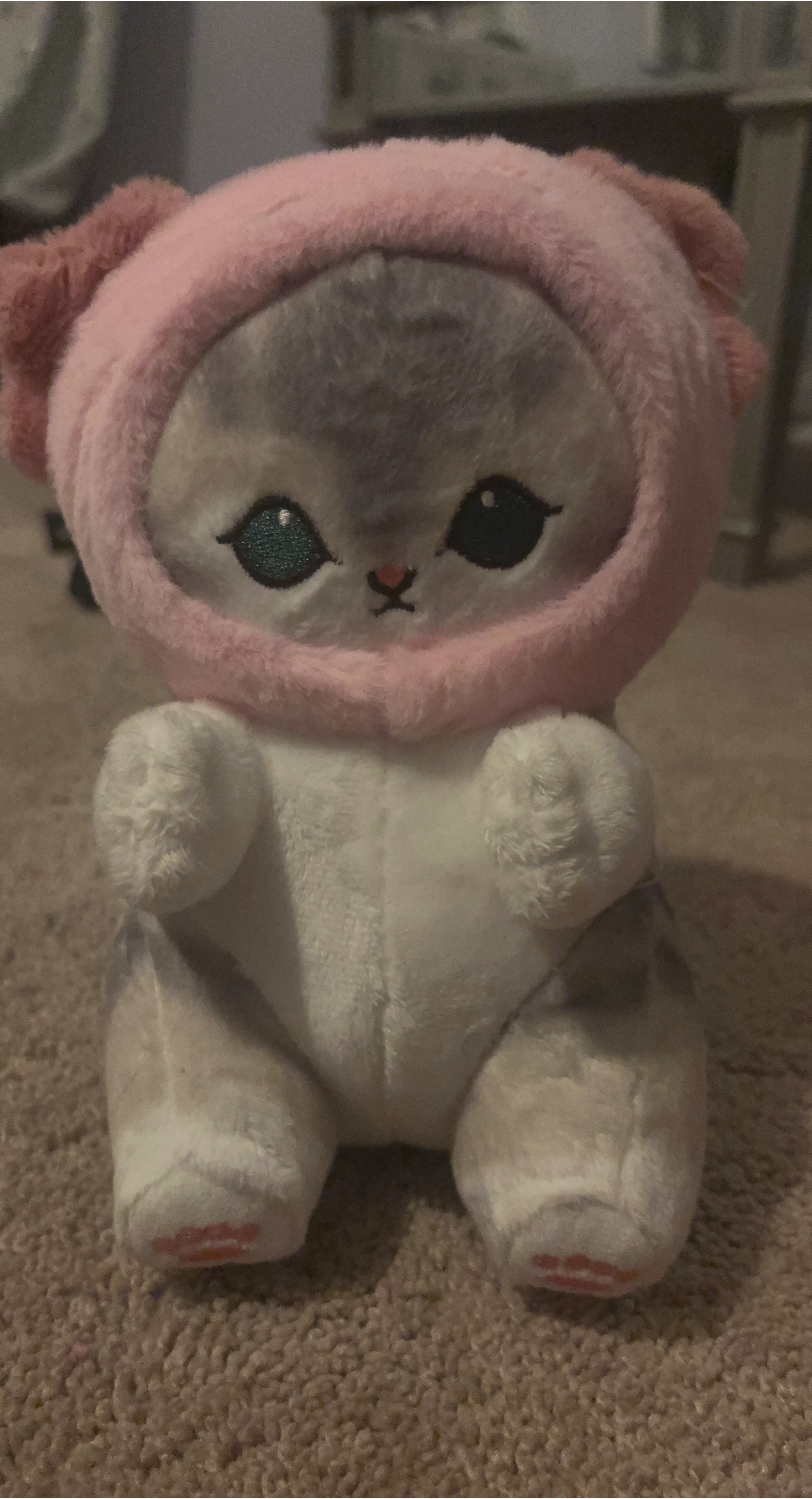 Selling a super cute plush toy! It's in great condition and has an adorable pink hood. Perfect for cuddling or as a cute decoration for a kid's room