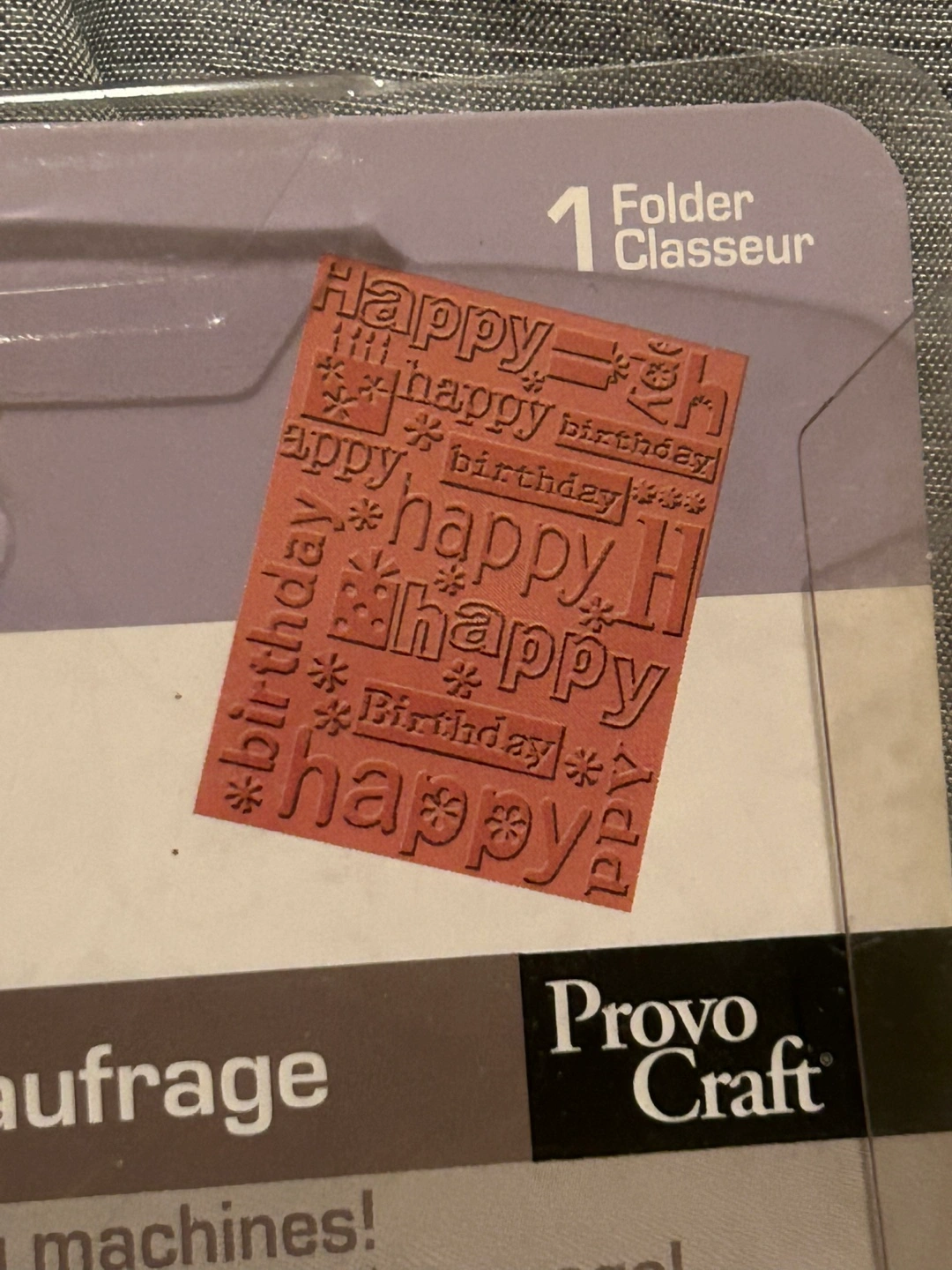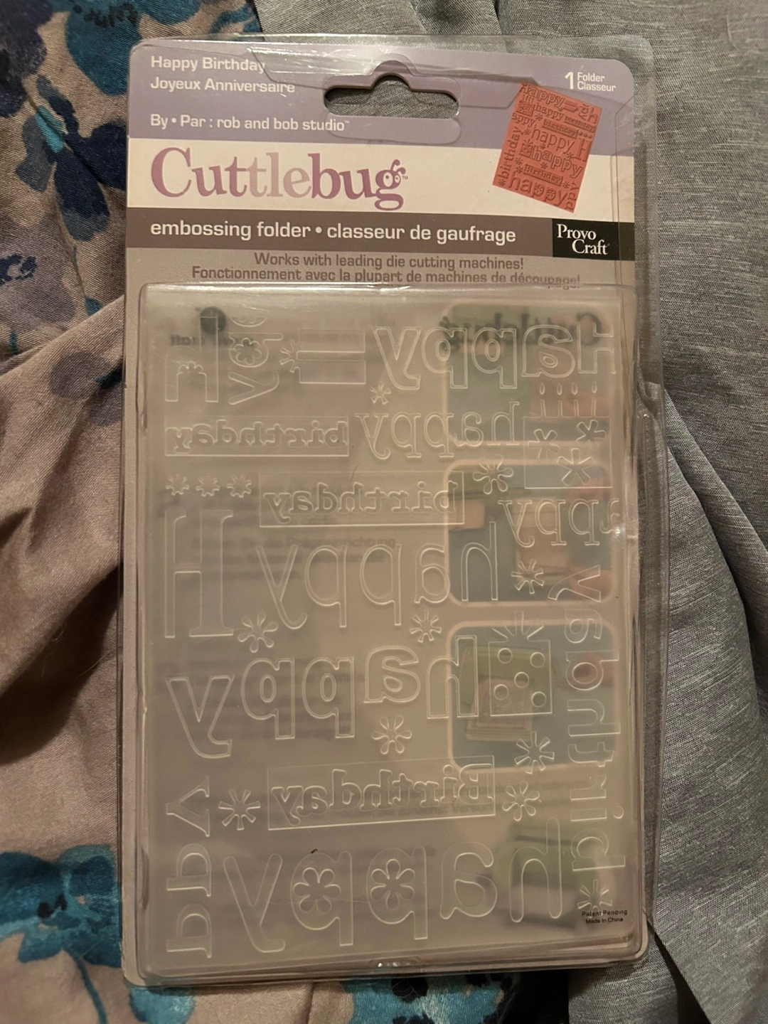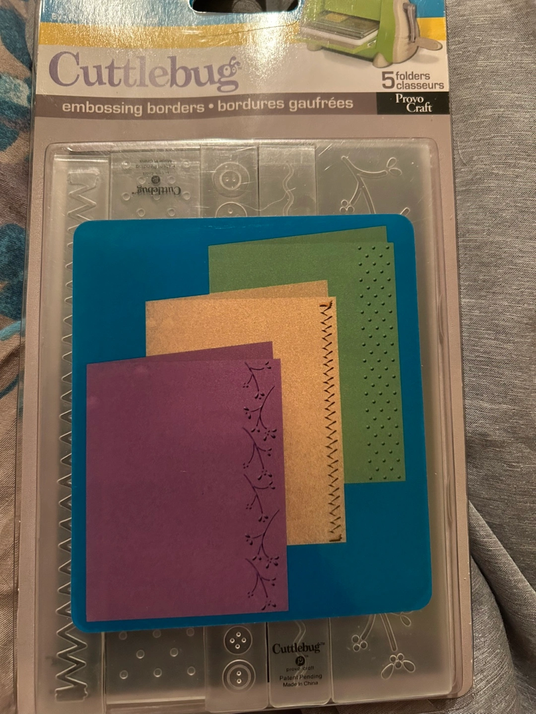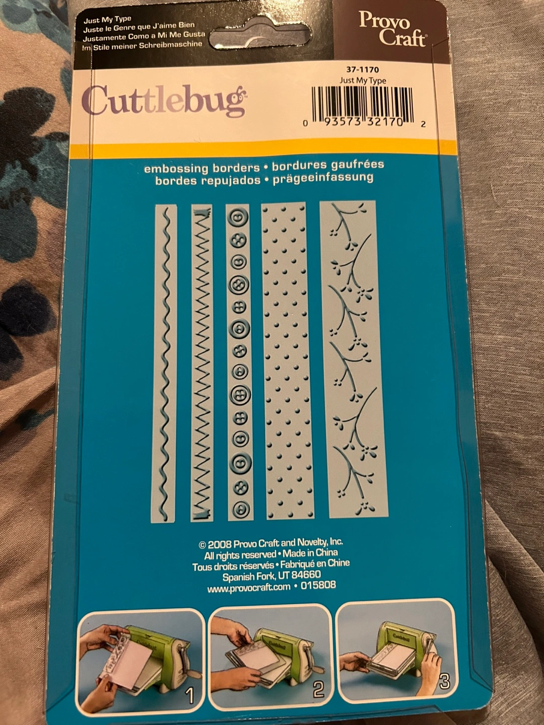 Selling Cuttlebug embossing folders by Provo Craft. These are great for adding texture and designs to your paper crafts. Included are: - Just My Type embossing borders - Happy Birthday embossing folder - 5 folders with various designs Perfect for card making, scrapbooking, and other creative projects!