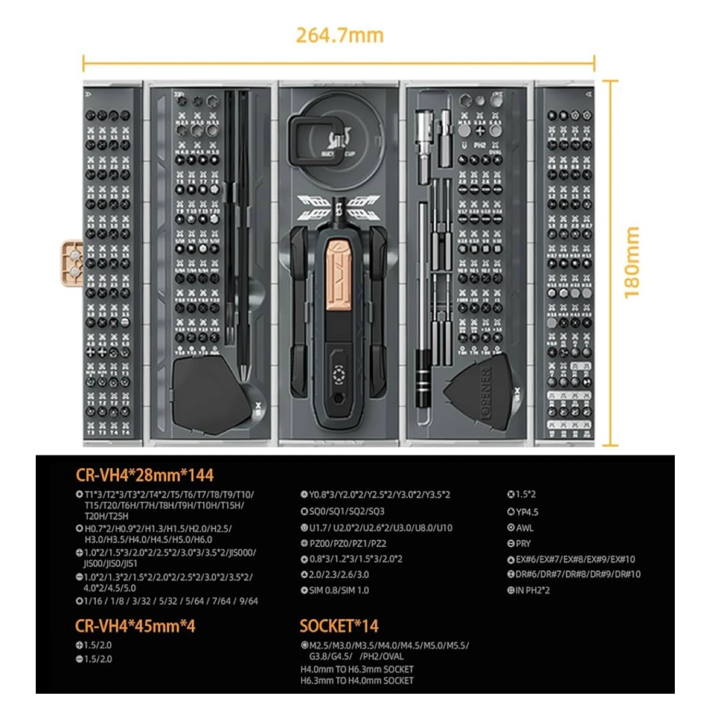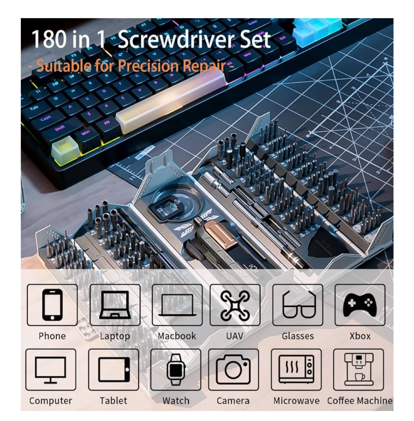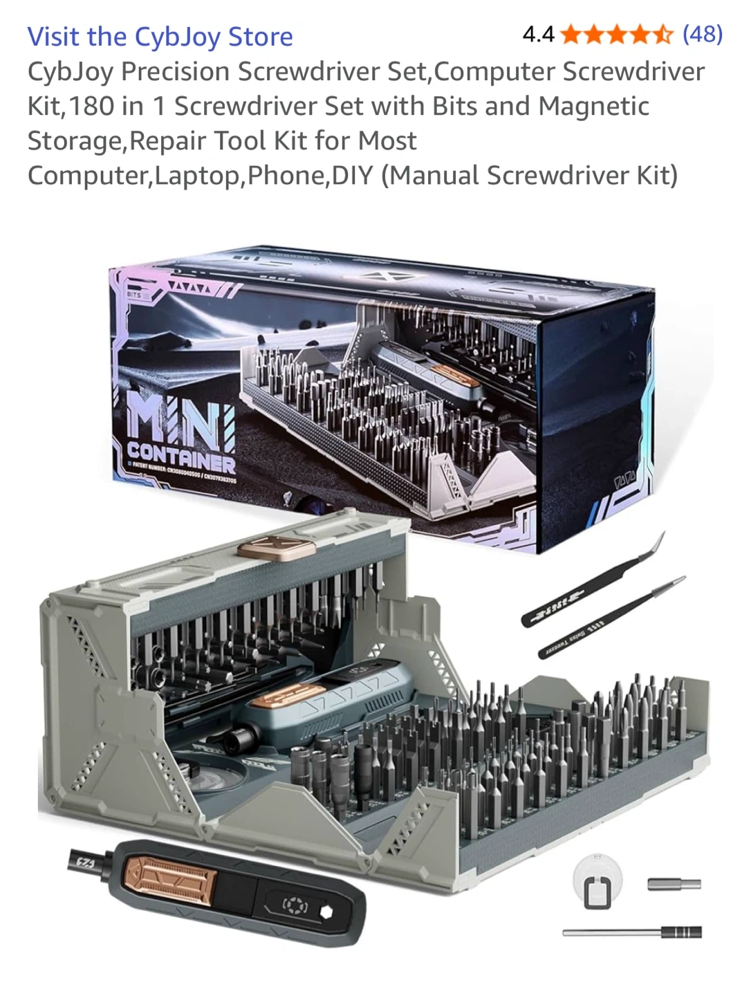 Looking to sell a CybJoy precision screwdriver set! It's a 180 in 1 set that's suitable for precision repair. It has bits and magnetic storage, and is a repair tool kit for most computers, laptops, phones and DIY projects. It's made with CR-V material and has a magnetic design.