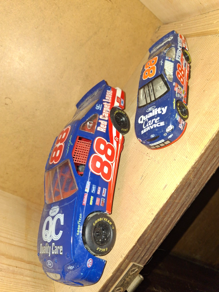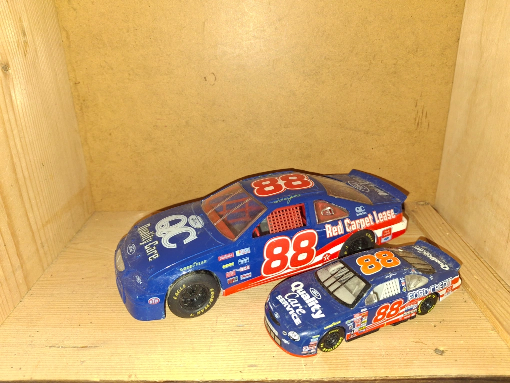Selling two Dale Earnhardt Jr. #88 diecast cars. One is larger than the other. Both are in good condition and would be a great addition to any NASCAR collection!