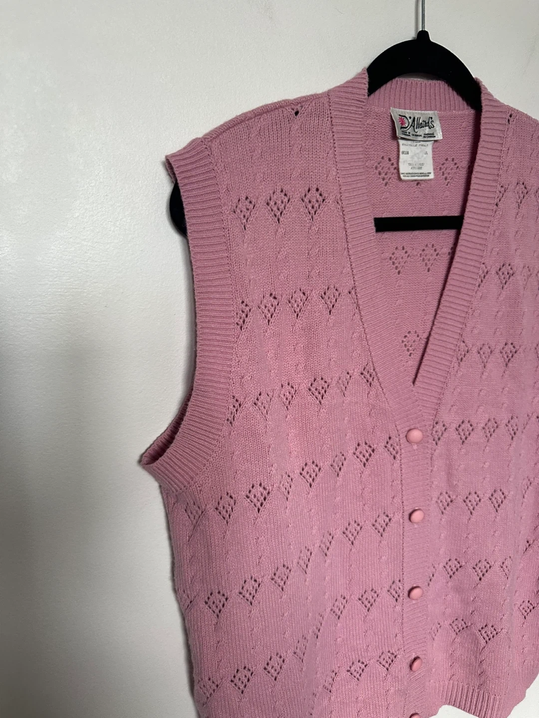D'Allaird's Pink Knit Vest Size L Preppy Grandmacore