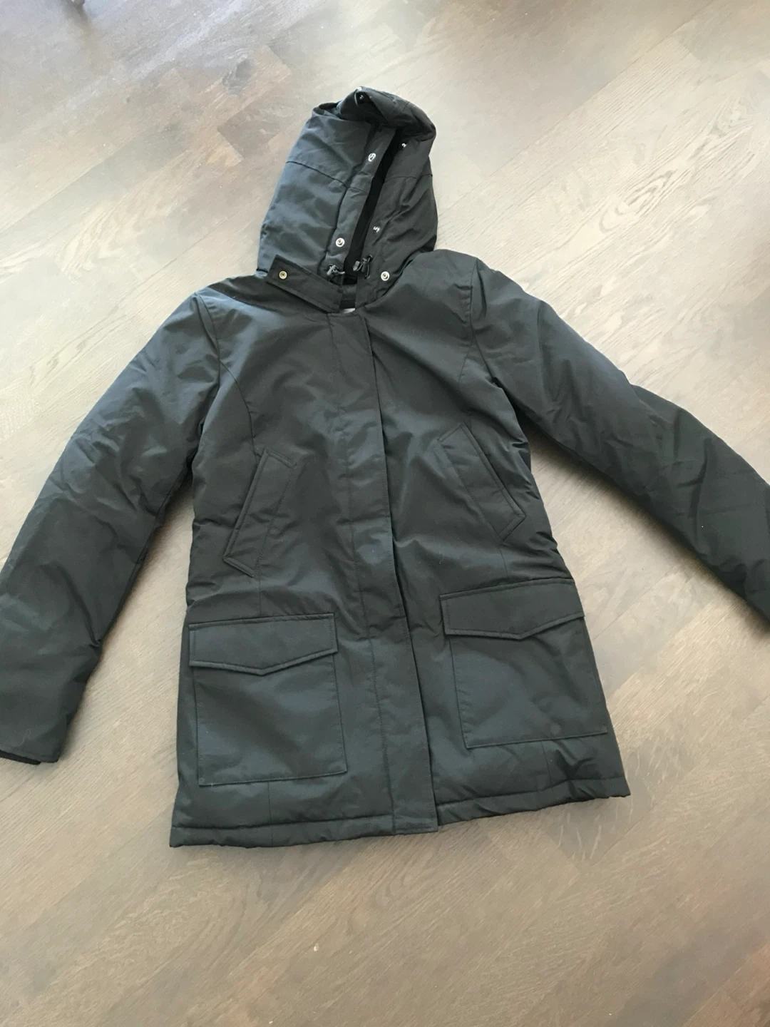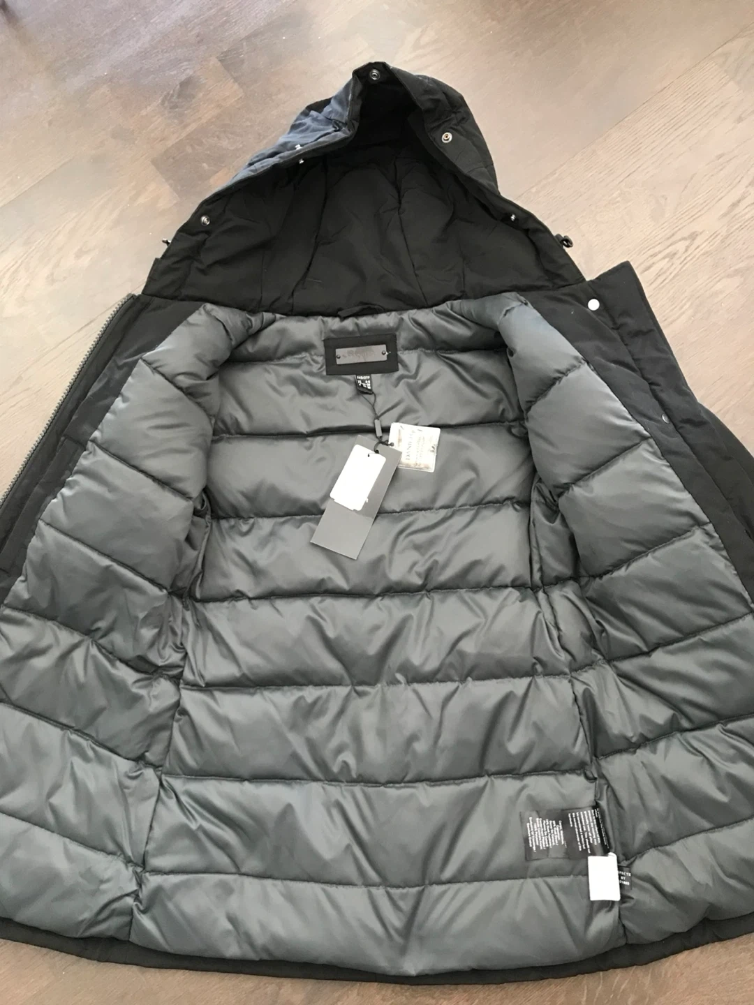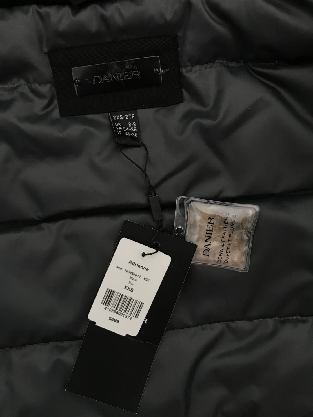 Selling a Danier Adrienne down parka in black, size XXS. It's made with: - Outer shell: 60% cotton, 40% nylon - Lining and exclusive of trimmings: 100% polyester - Filler: 90% duck down, 10% duck feathers Originally bought for $699