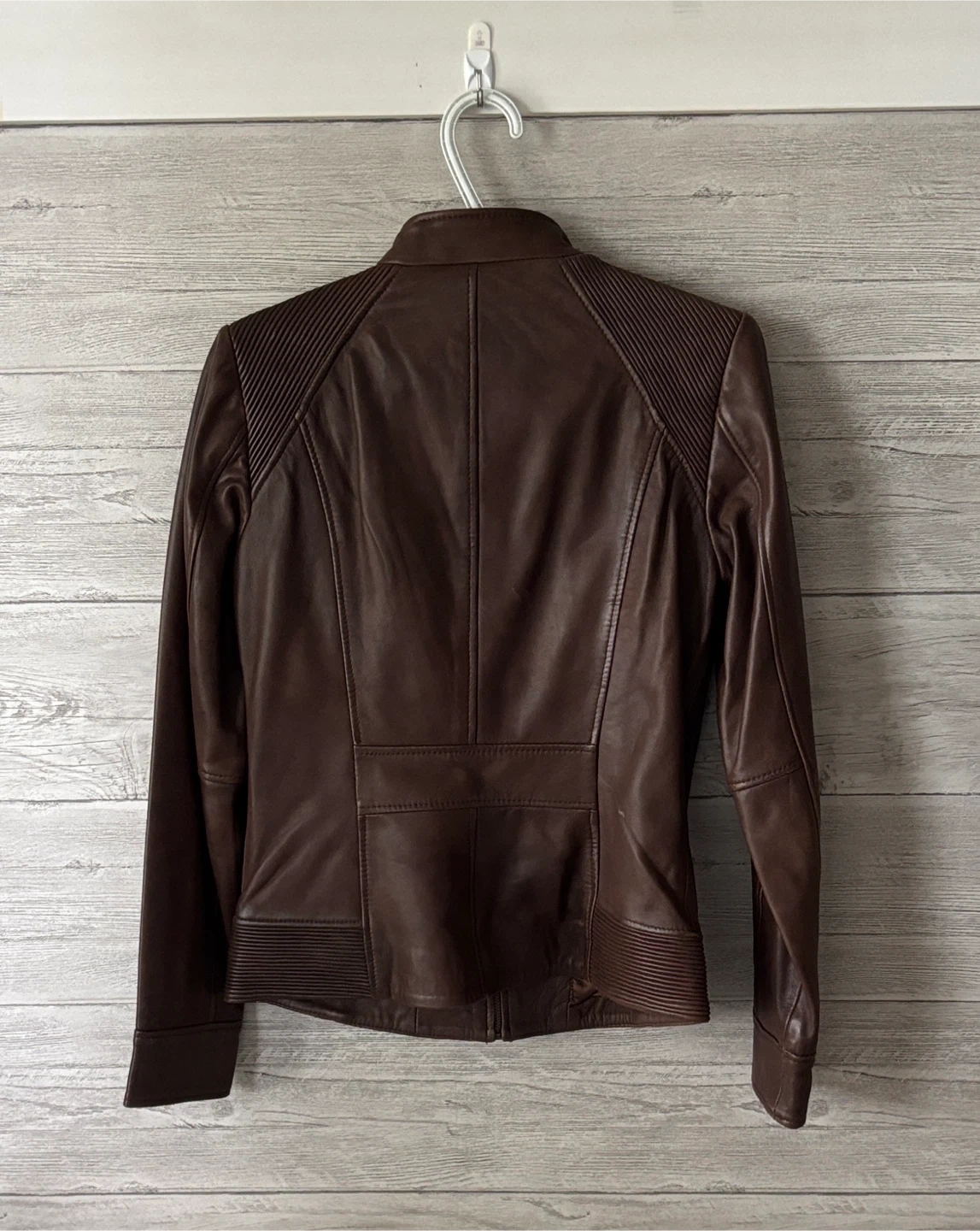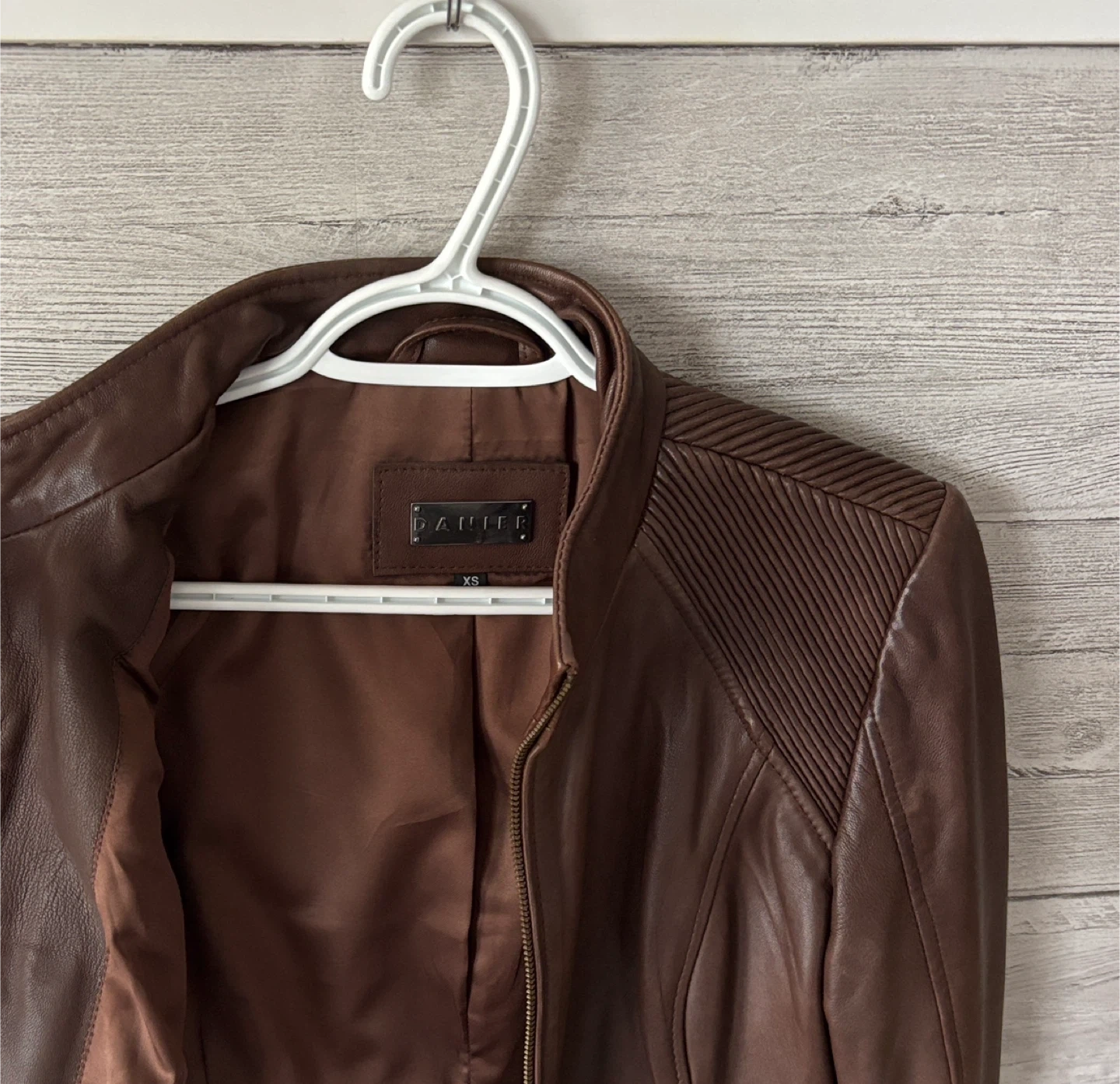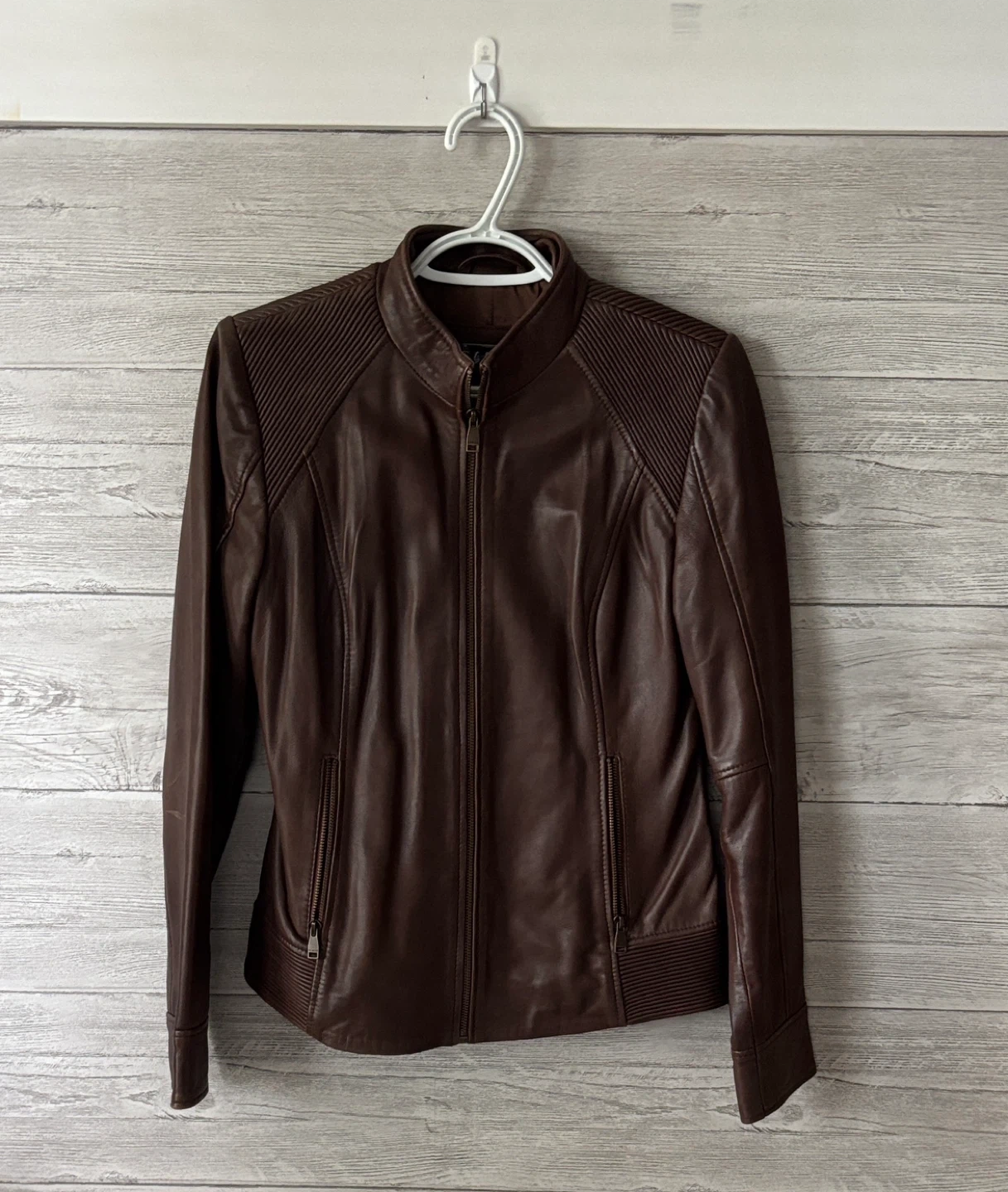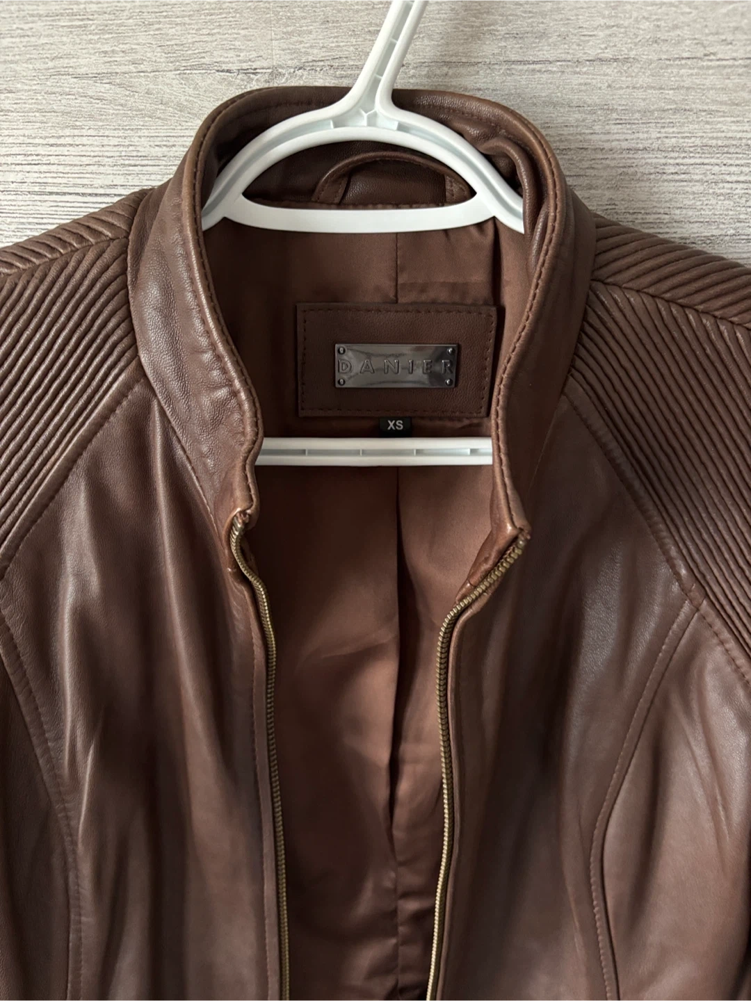Selling a beautiful brown leather jacket from Danier! It's a size XS and in great condition. Perfect for adding a touch of style to any outfit. The leather is soft and supple, and the jacket has a classic design that will never go out of style