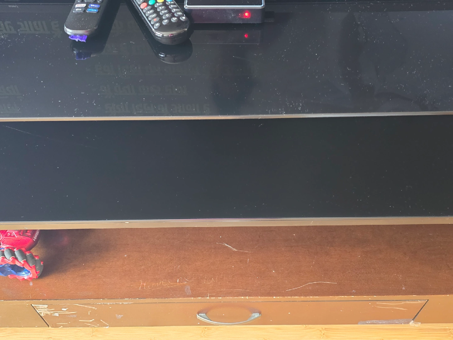 Selling a dark brown TV stand featuring sleek glass shelves. It has a drawer for storage and a modern design that would look great in any living room. There are some signs of use, as shown in the pictures.