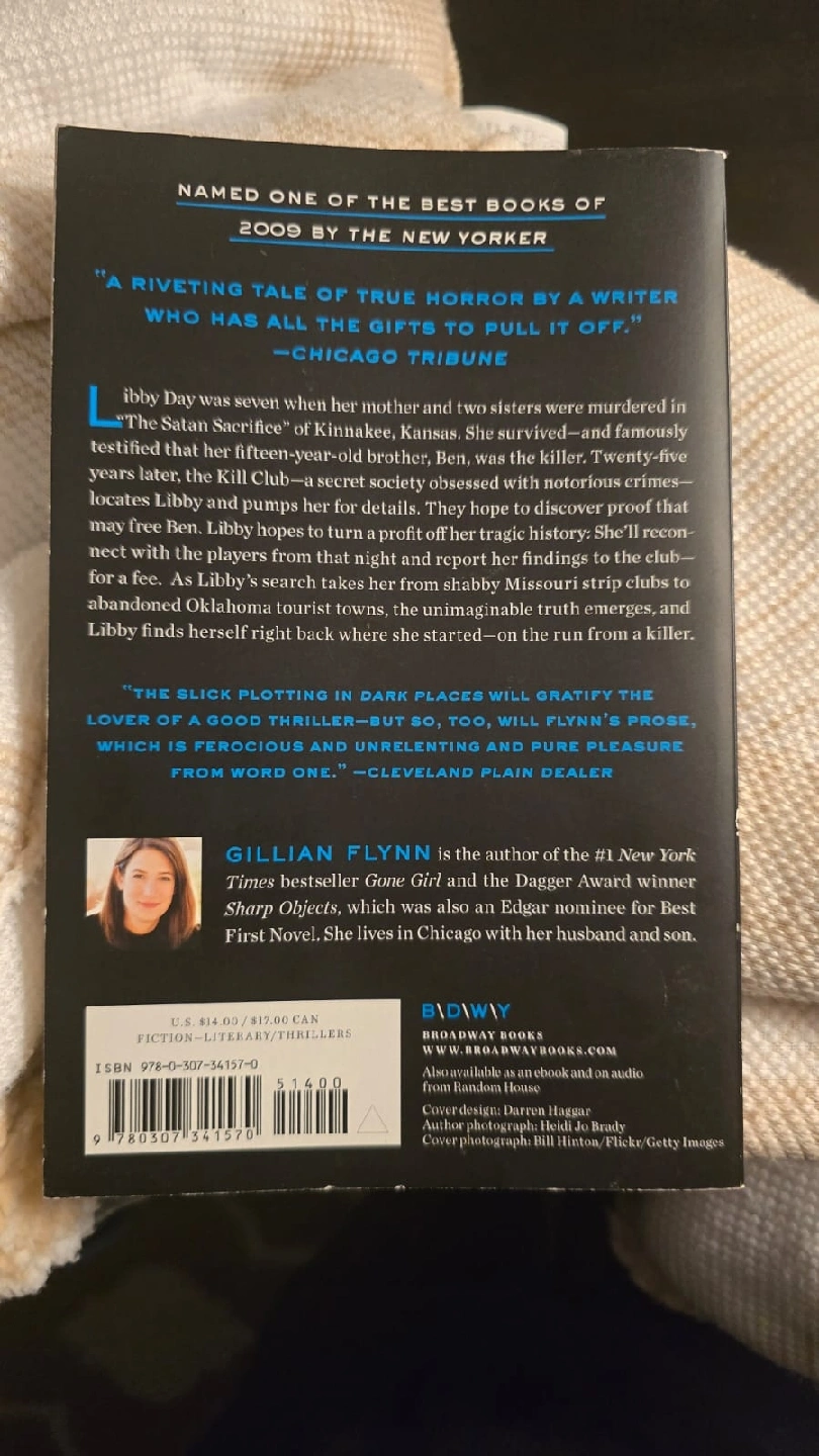 Selling a copy of Dark Places by Gillian Flynn! This is a novel by the author of Gone Girl, a #1 New York Times Bestseller. It's a gripping thriller about Libby Day and her search for the truth about a family tragedy. Named one of the best books of 2009 by the New Yorker
