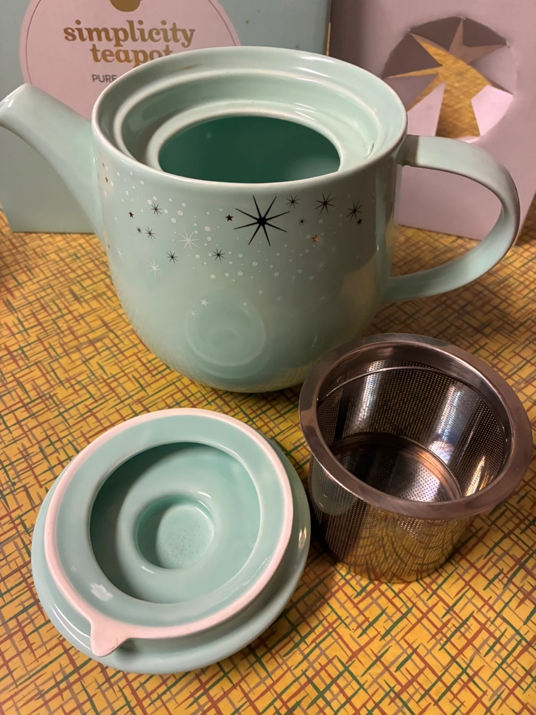 Selling a DAVIDsTEA Simplicity Teapot! It's a lovely light green colour with a starburst design. It holds 28 oz or 829 ml. Comes with the stainless steel infuser and lid. Box included if you’d like! There’s a small chip on the spout and the top of the box has a stain (if you wanted the box), pls only buy if you’re okay w that : ) 📍 Dowtown Toronto! Major Street and Ulster Street (south of Harbord St, West of Spadina Ave) 🤝 Pick up only 🕣 Available most weeknights 💰 Cash or eTransfer DirectDep at pickup