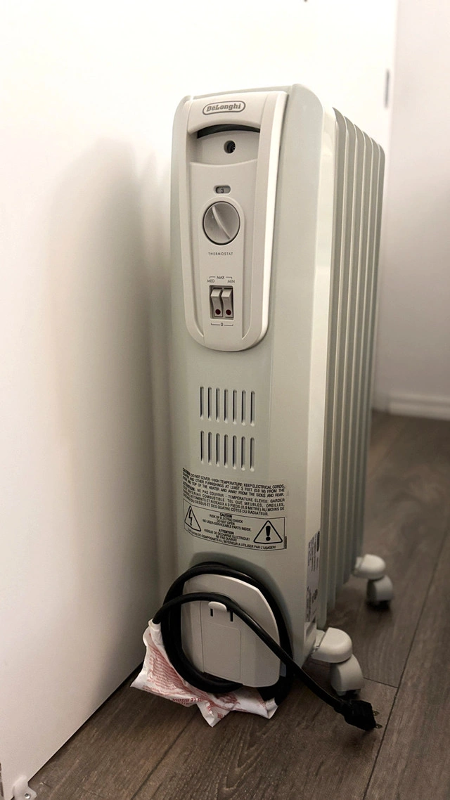 De'Longhi Oil-Filled Radiator Space Heater, Full Room Quiet 1500W, Adjustable Thermostat 3 Heat Settings, Energy Saving, Safety Features, Light Gray Condition: Used - Good For Sale By: Owner Payment: Cash accepted