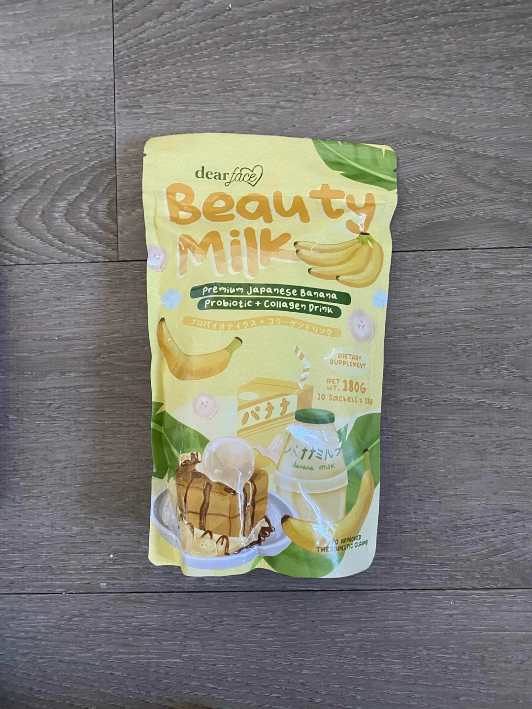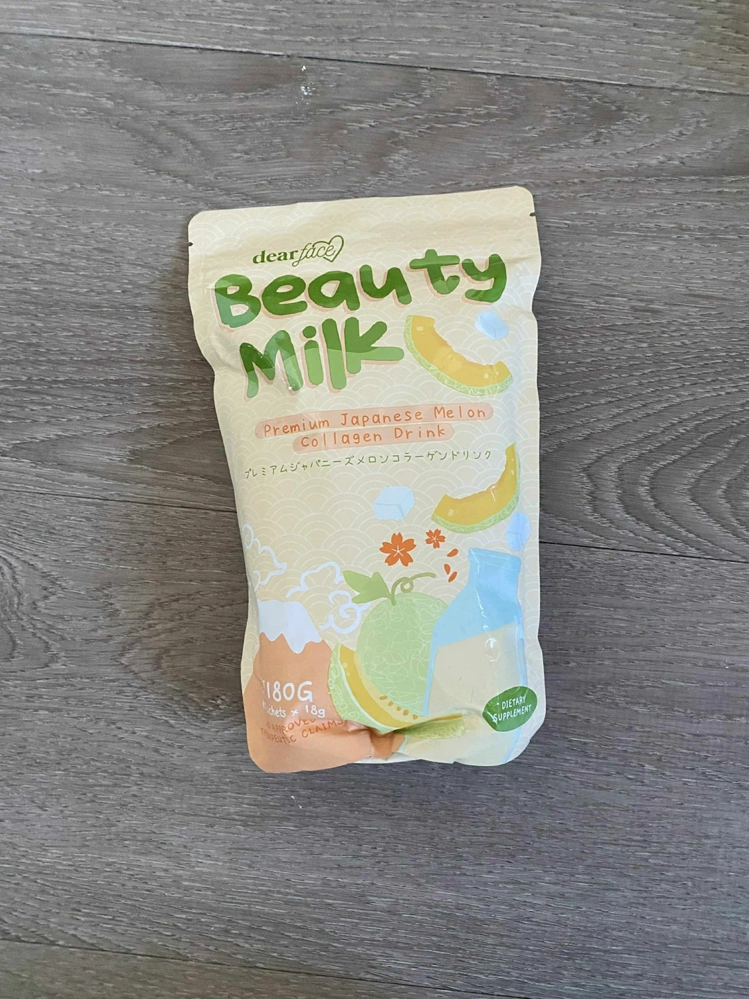Here are three bags of Dear Face Beauty Milk in Strawberry, Melon and Banana flavours! They're premium Japanese drinks with glutathione or collagen. Each bag contains 180g or 10 sachets x 18g. Great as a dietary supplement!