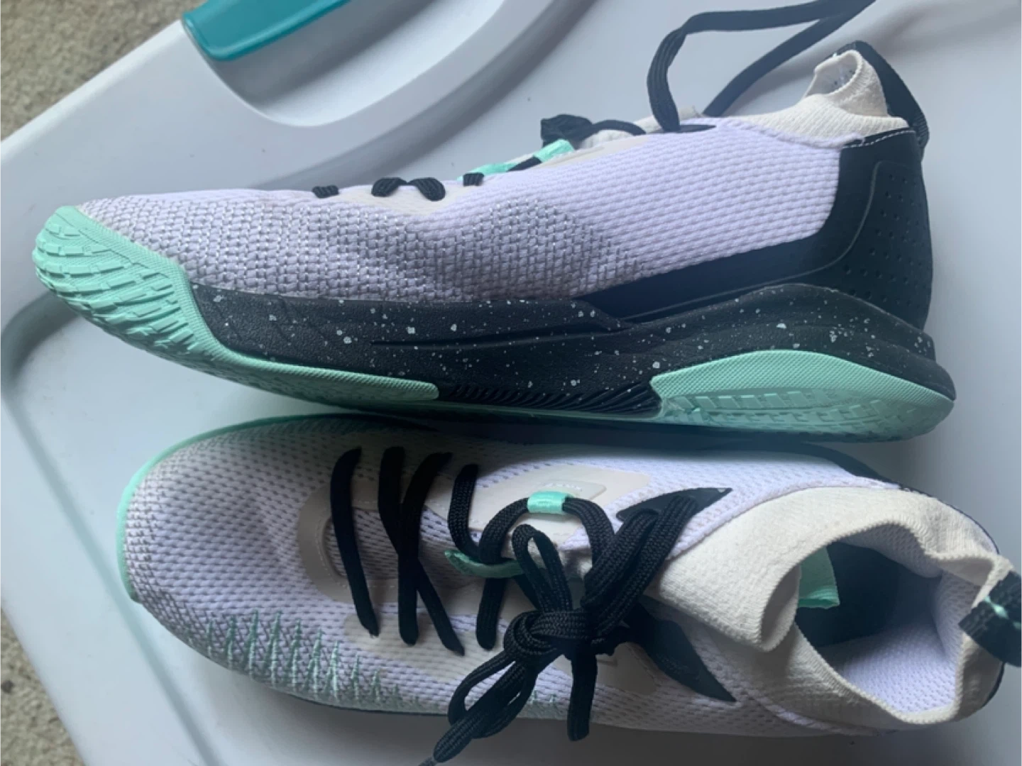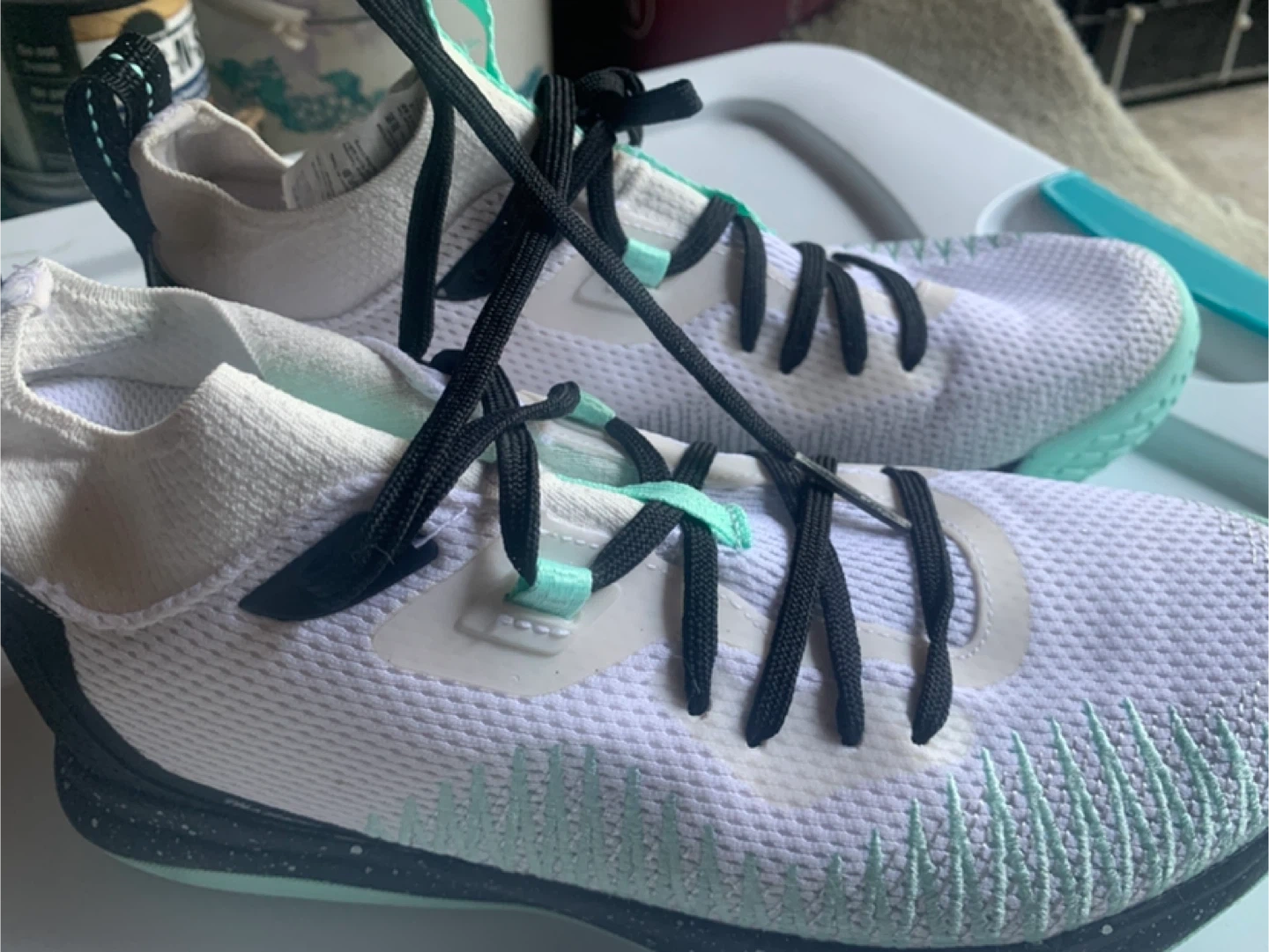 Selling a pair of Decathlon SF 500 sneakers in a lovely white and mint colour! They are a women's US size 7.5. The shoes are in great condition and ready for a new home
