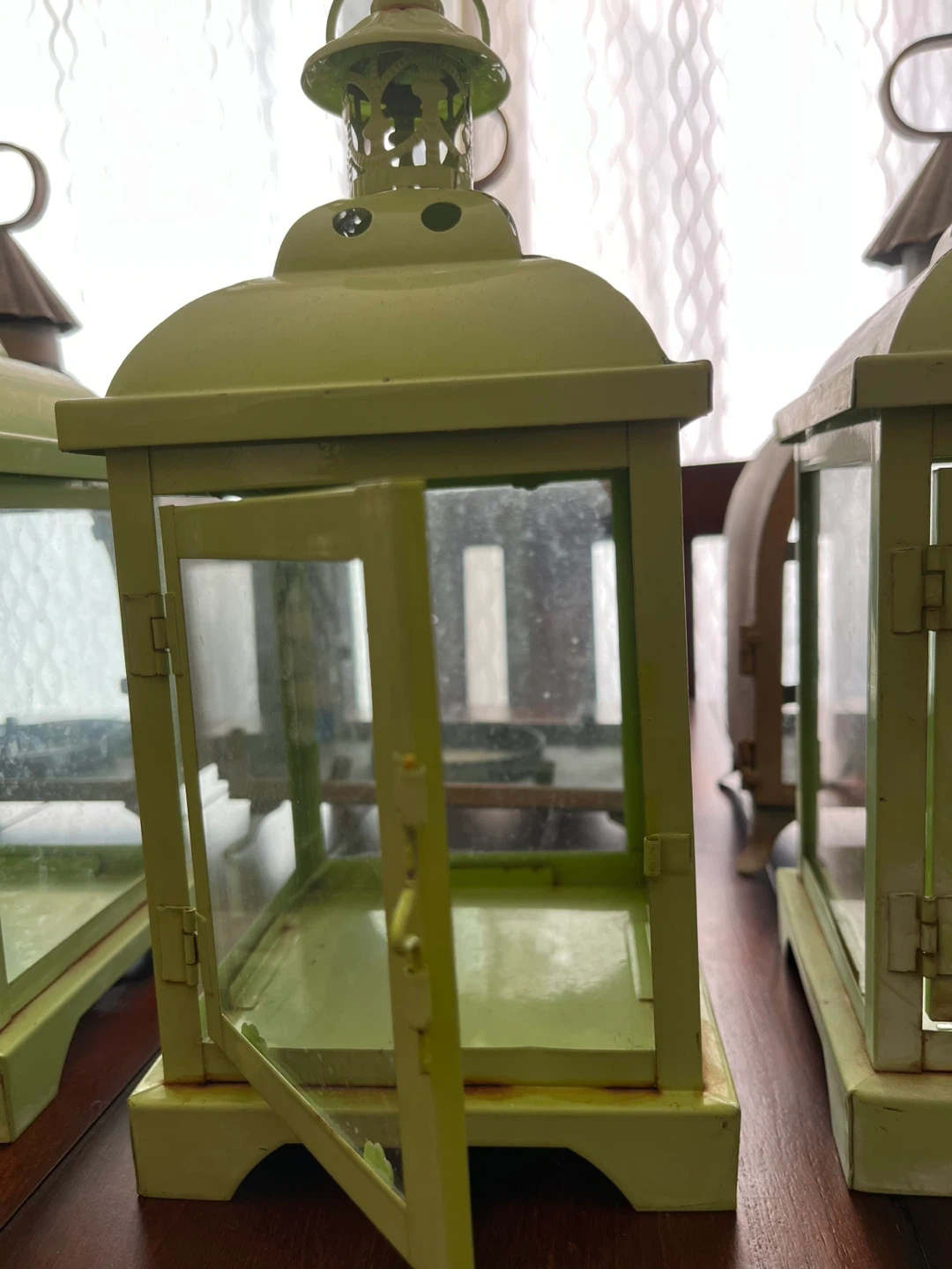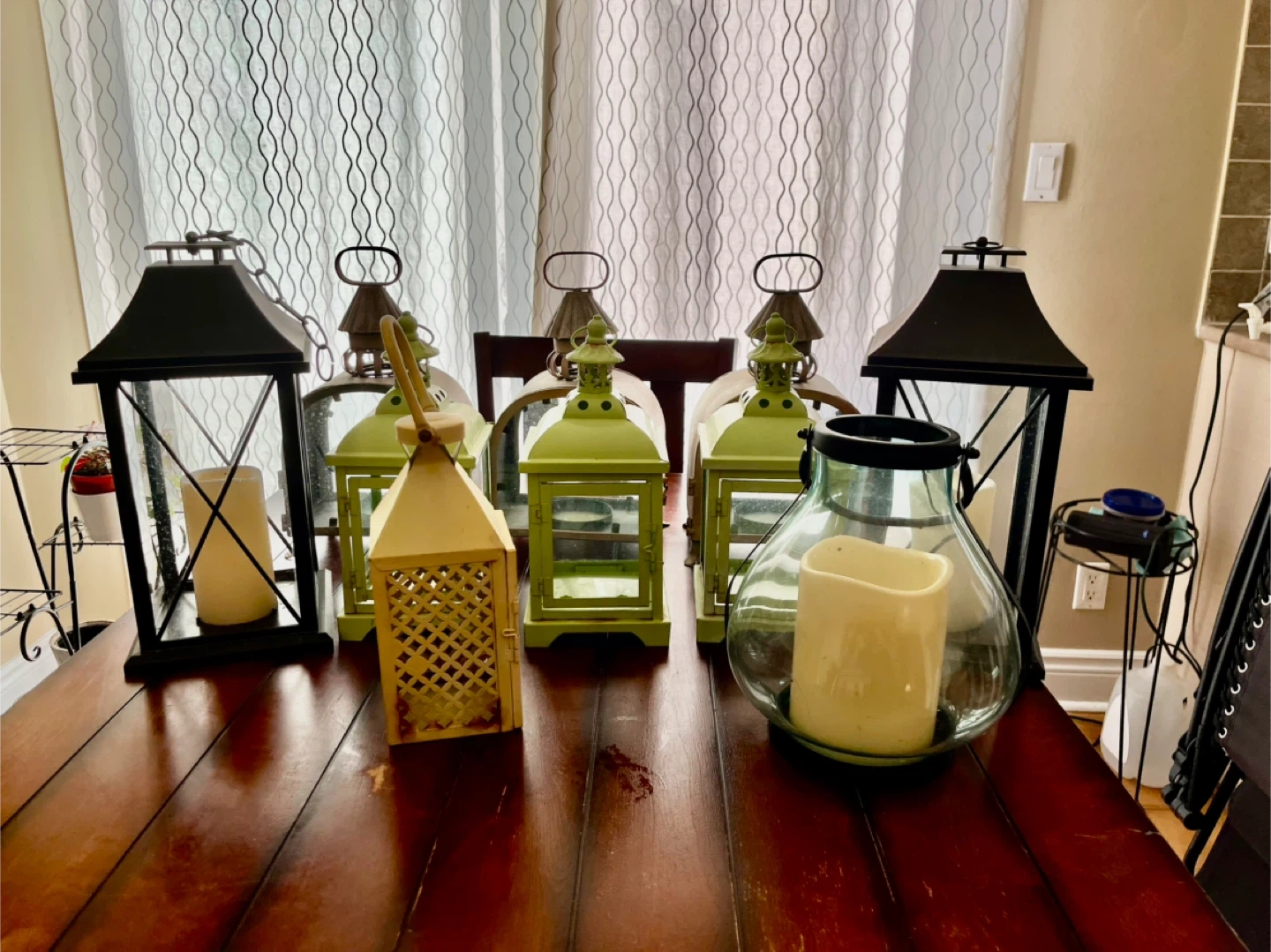 Selling 10 decorative lanterns! Most are made of metal and glass, a few are plastic. They would look great indoors or on a patio. They come in a variety of colours and designs. Metal ones have a bit of rust but could be painted.