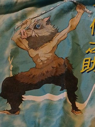 A t-shirt with a print of Inosuke from Demon Slayer! The shirt is in great shape and ready for a new home
