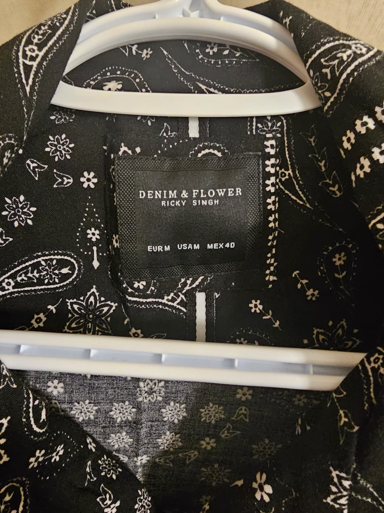 Selling a stylish DENIM&FLOWER Ricky Singh shirt! It features a cool black and white bandana patterned design. The size is M (US size). It's in great condition and was very rarely used