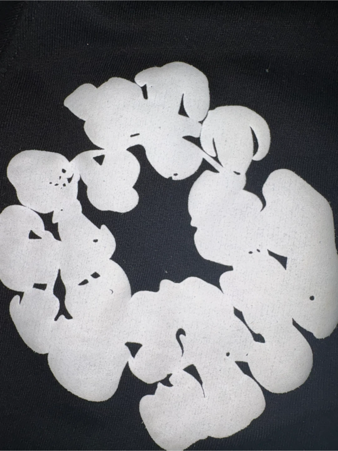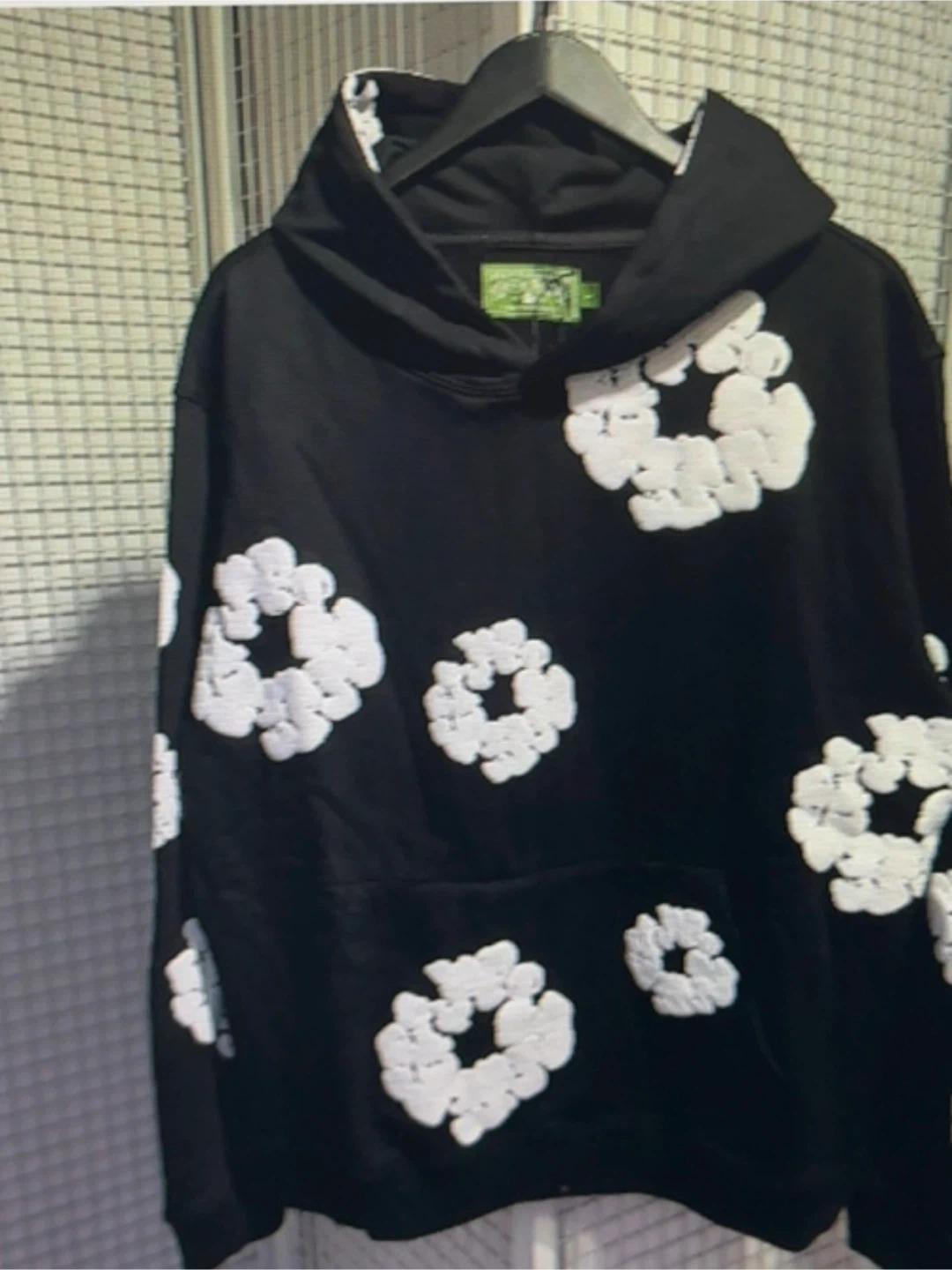 Selling a Denim Tears hoodie in size medium. It's black with white floral designs. In great condition!