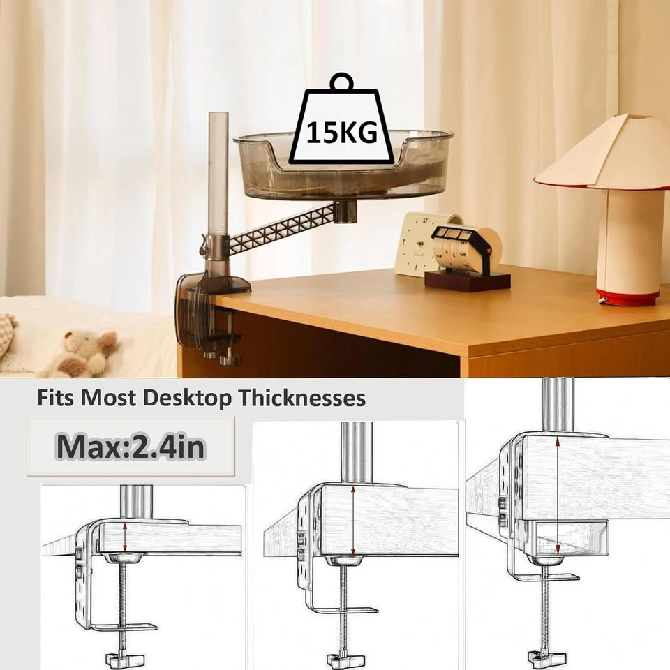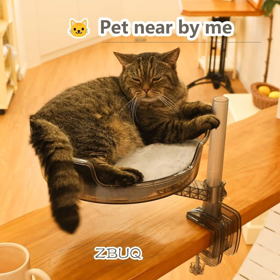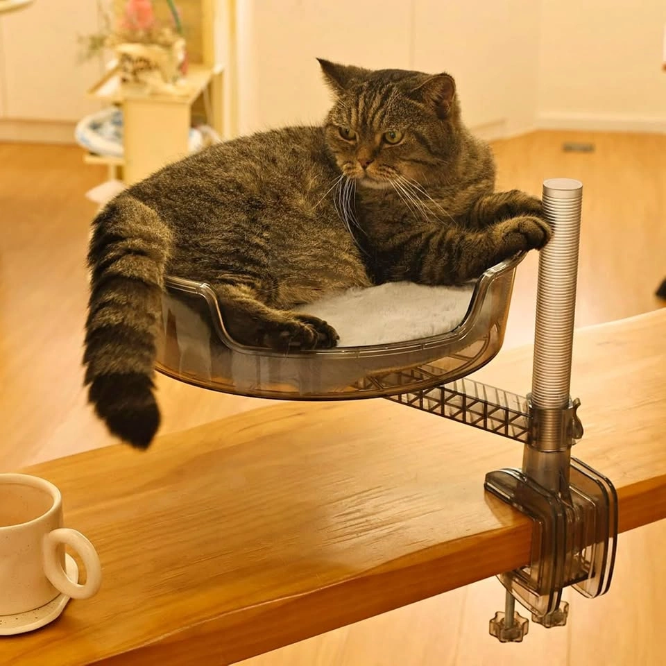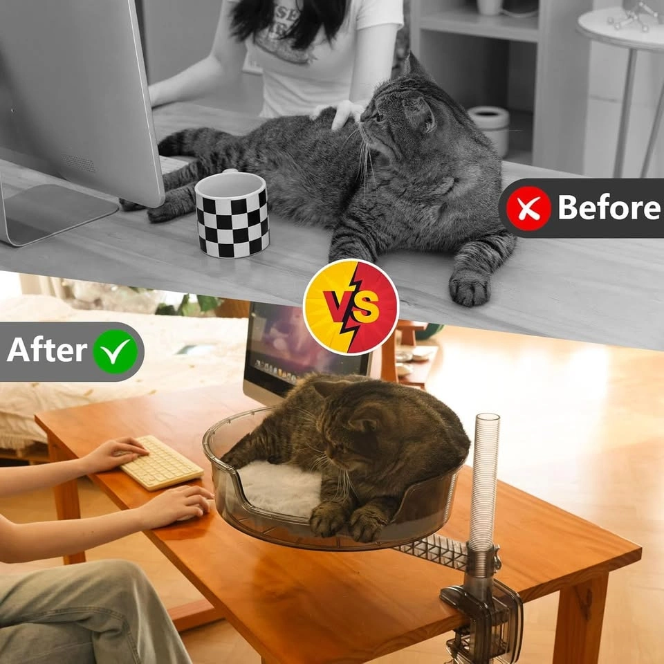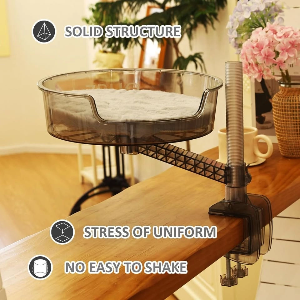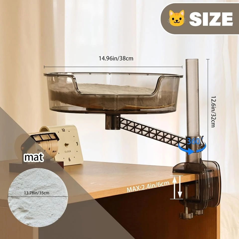 Desk Cat Bed with Pet Mat, 360° Rotation & Adjustable Height