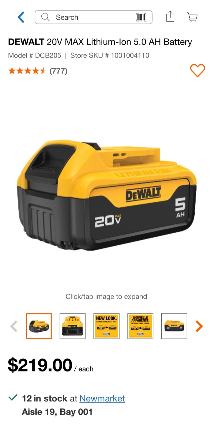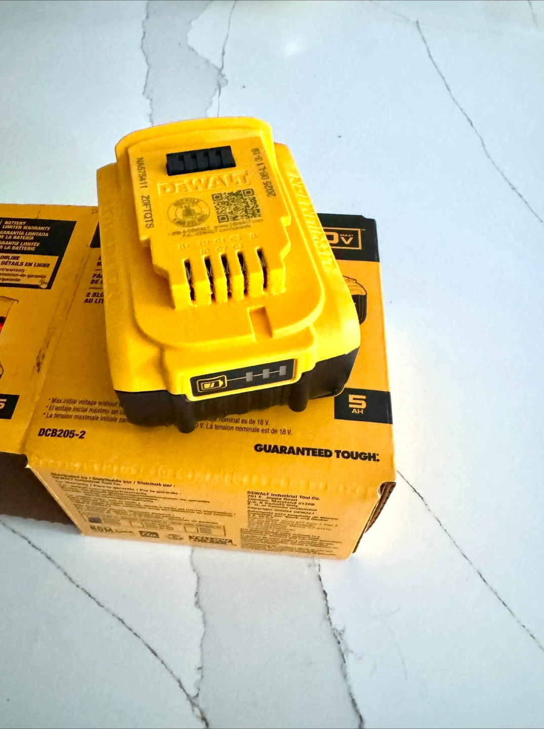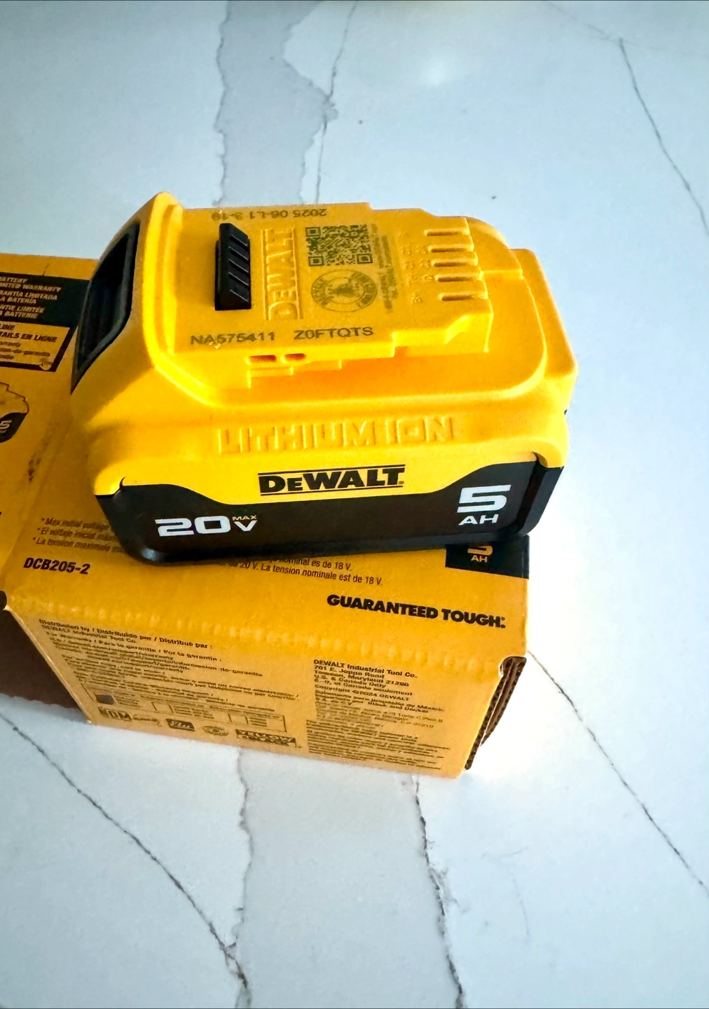 Selling a brand new DeWalt 20V 5Ah Lithium Ion Battery! It's never been used This battery is part of the DeWalt 20V MAX system, known for its long runtime and durability. Perfect for your DeWalt power tools!