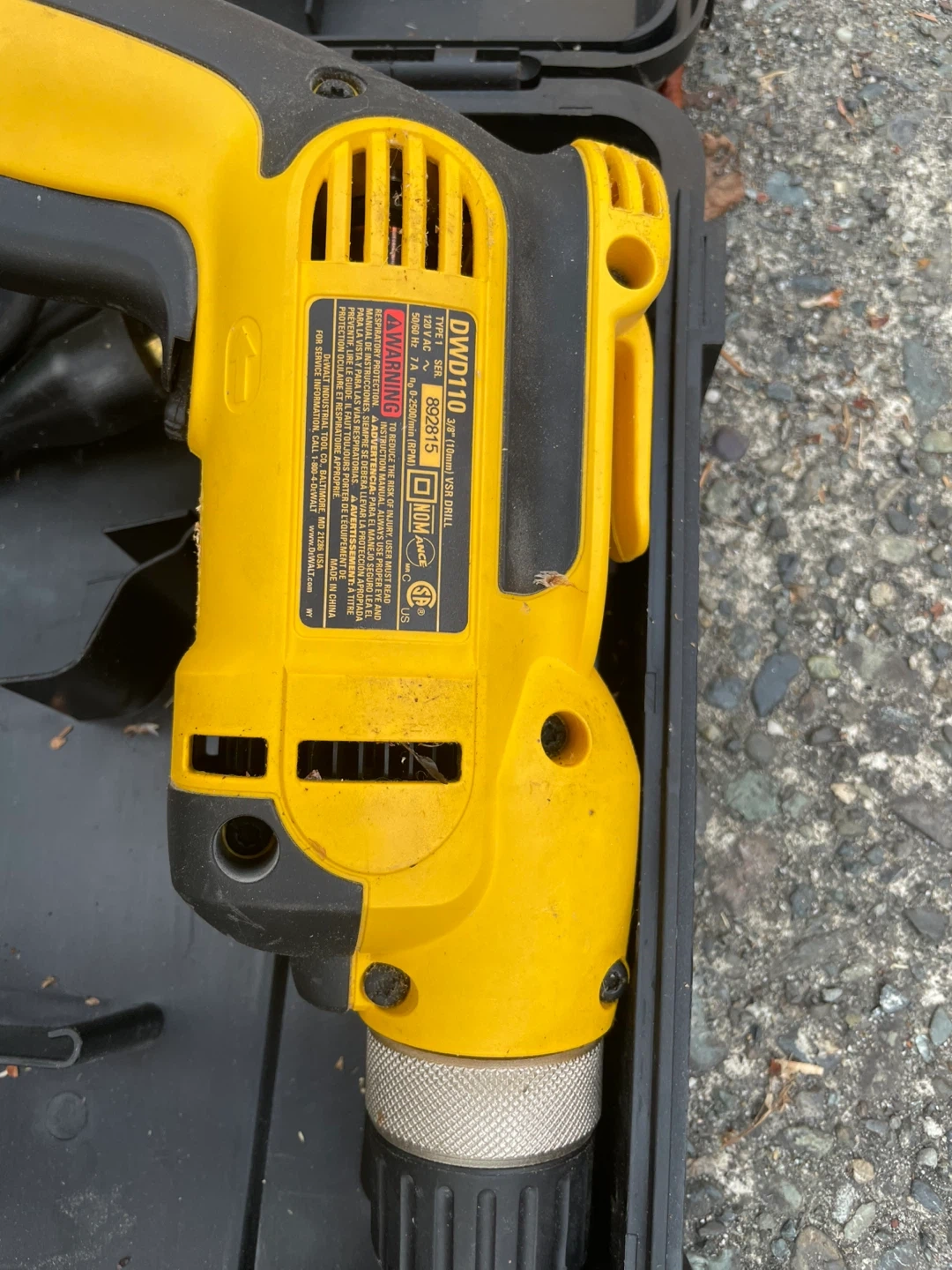 Selling a DeWalt DWD110 3/8" (10mm) VSR Drill. It comes with its original case and some paperwork. It's in good working condition and ready for your next project!