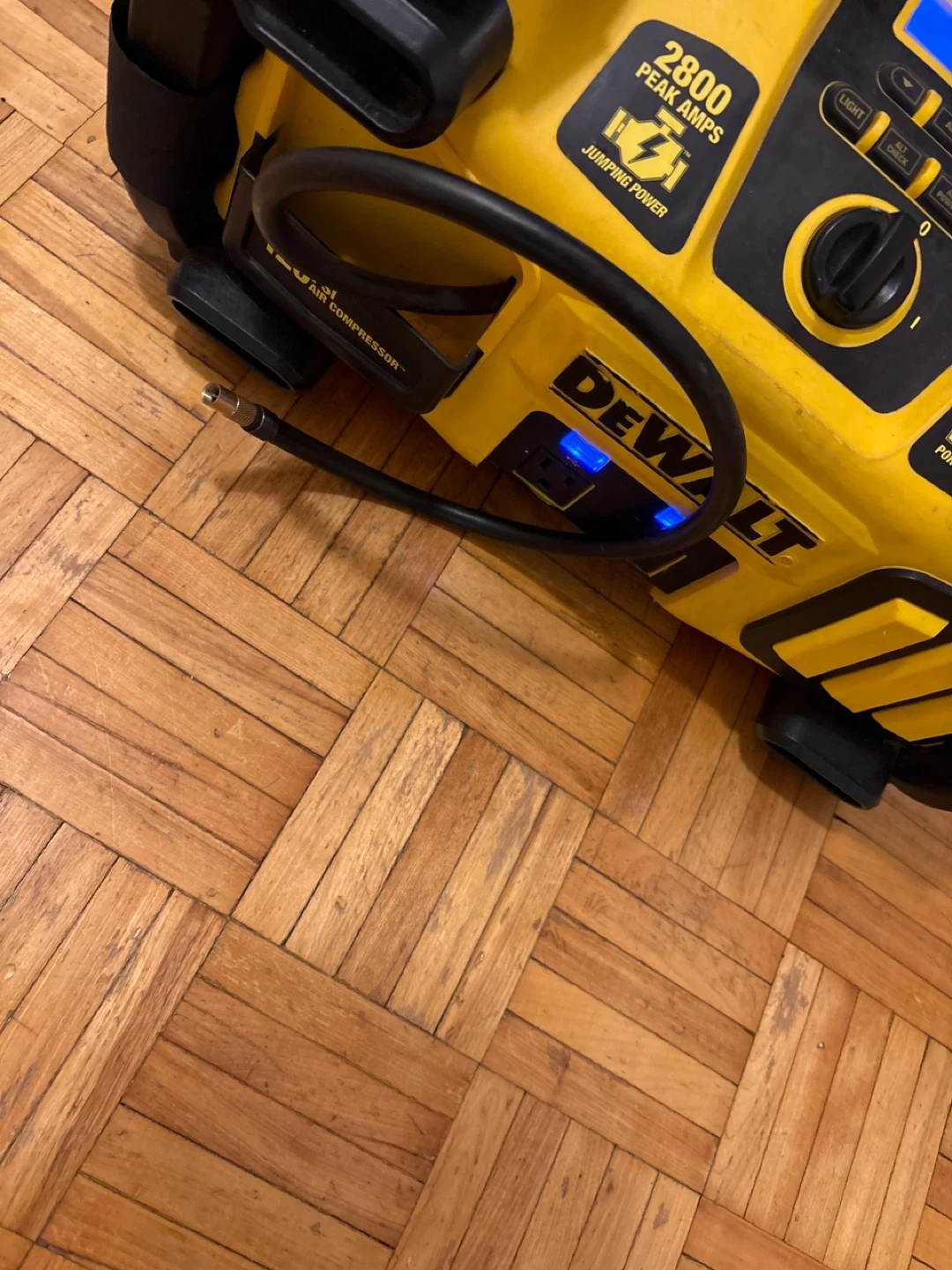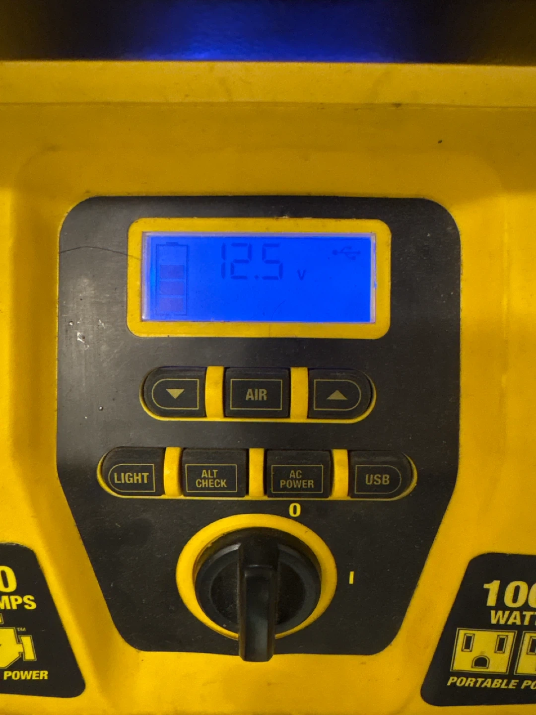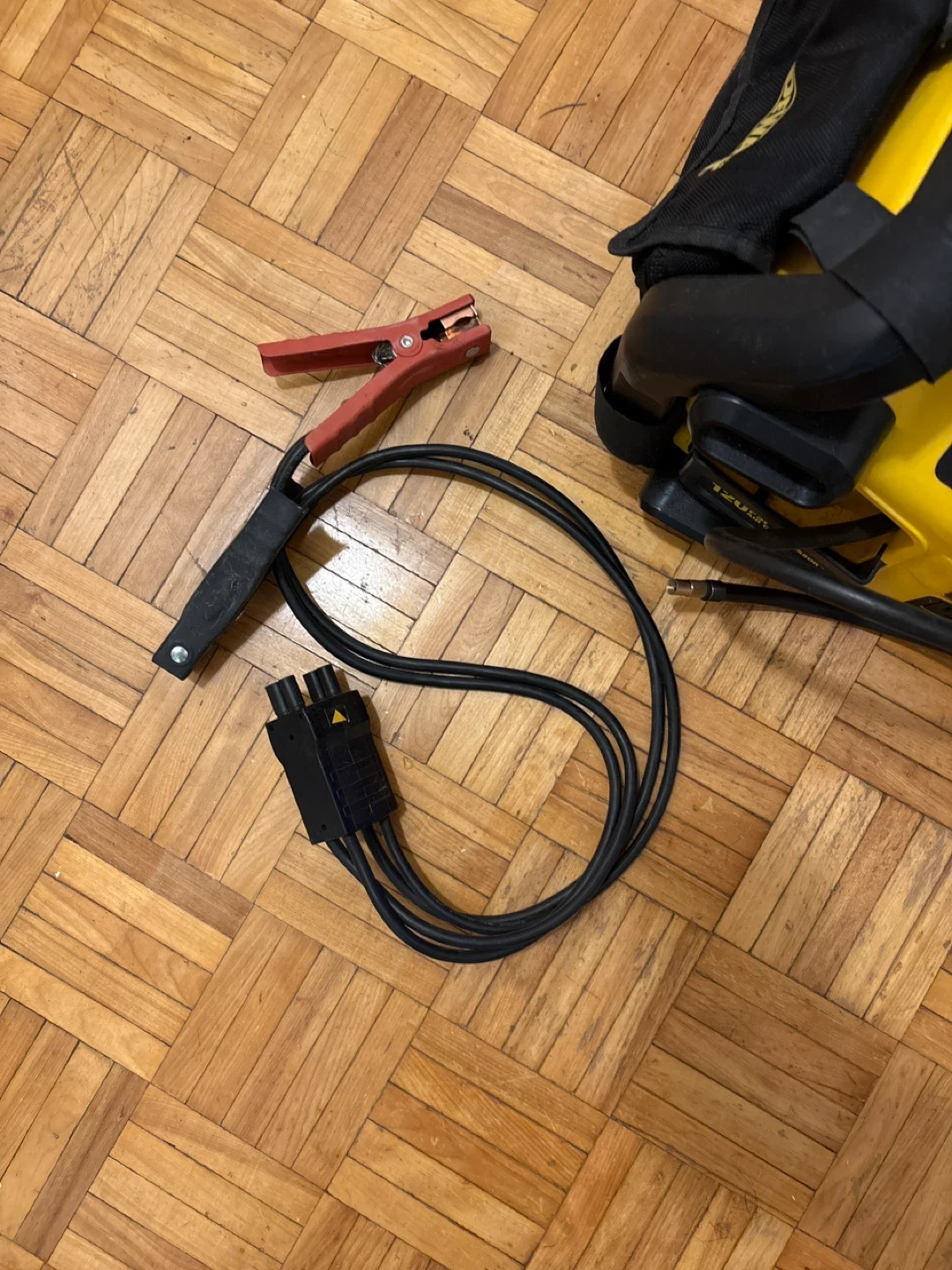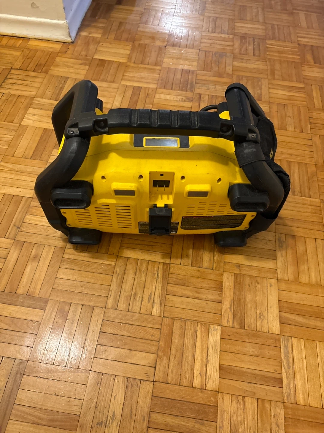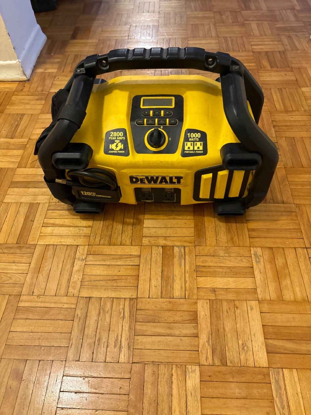 Selling a DeWalt portable power station and jump starter. It features: - 2800 Peak Amps - 1000 Watts - 120 PSI Air Compressor It also includes the necessary cables for jump-starting your vehicle. Great for emergencies or outdoor activities!