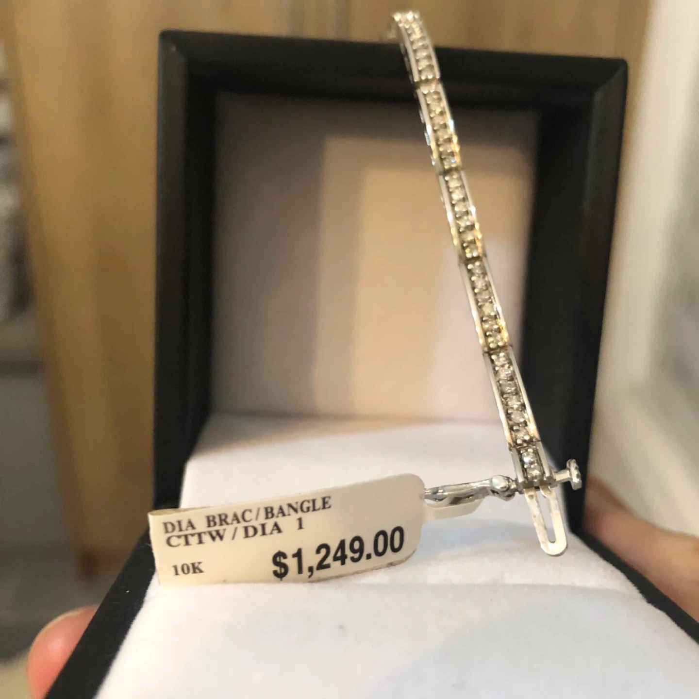 Selling a beautiful diamond bracelet. It's 10K gold and comes in its original box. The tag shows it originally retailed for $1,249.00 USA