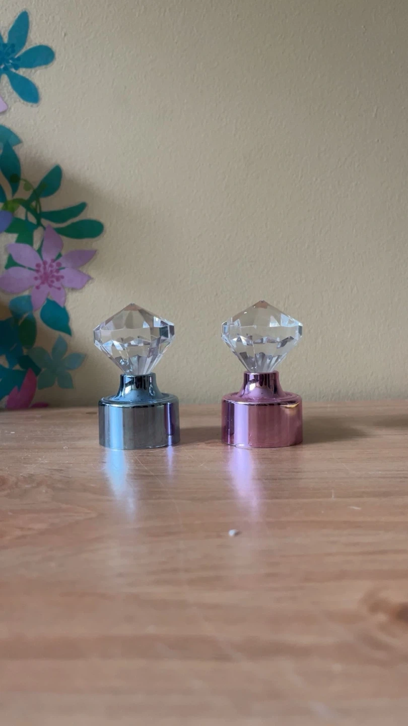 Cute diamond crystal table decor! Perfect for adding a touch of sparkle to any room. Comes in both pink and silver. One of the battery is dead.