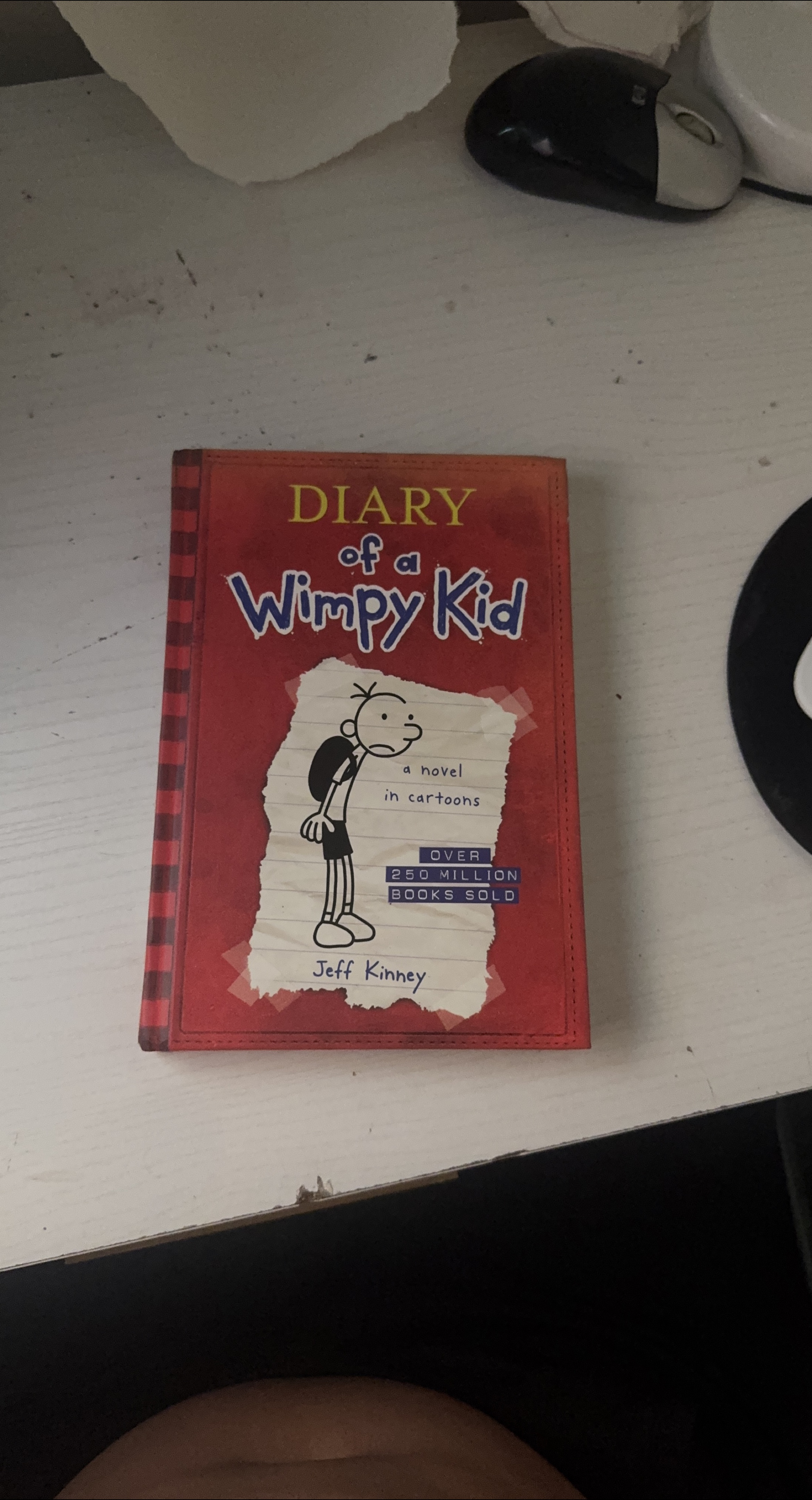 Selling a copy of Diary of a Wimpy Kid by Jeff Kinney! It's a novel in cartoons and part of a series that has sold over 250 million books