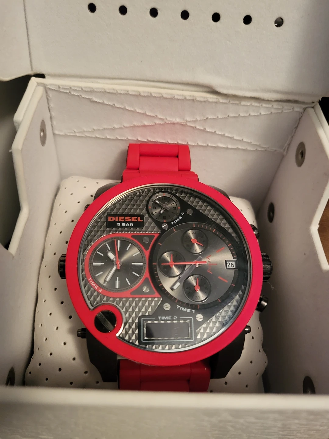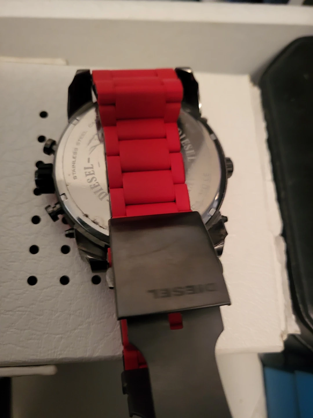 Diesel Mens Gunmeral Dial red watch. . Great to wear everyday or collectors. (needs new battery) *value online $200 to $400 U.S