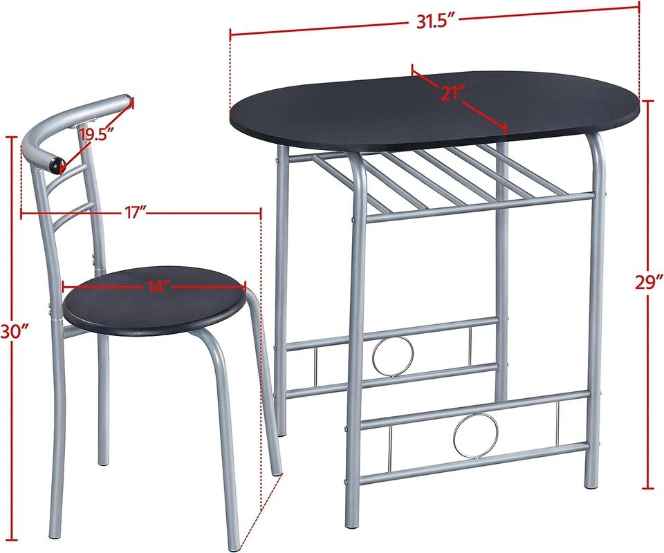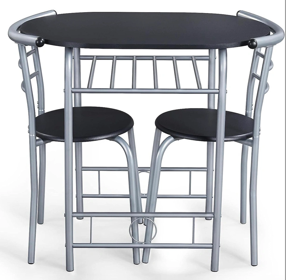 MODERN LOOK : 3-Piece Dining set features classic curved silhouettes for a relaxed and inviting look. STURDY : Made of thick steel tubes and CARB P2 compliant MDF boards; waterproof table top; anti-scratch painting Perfect for your cozy dining area!