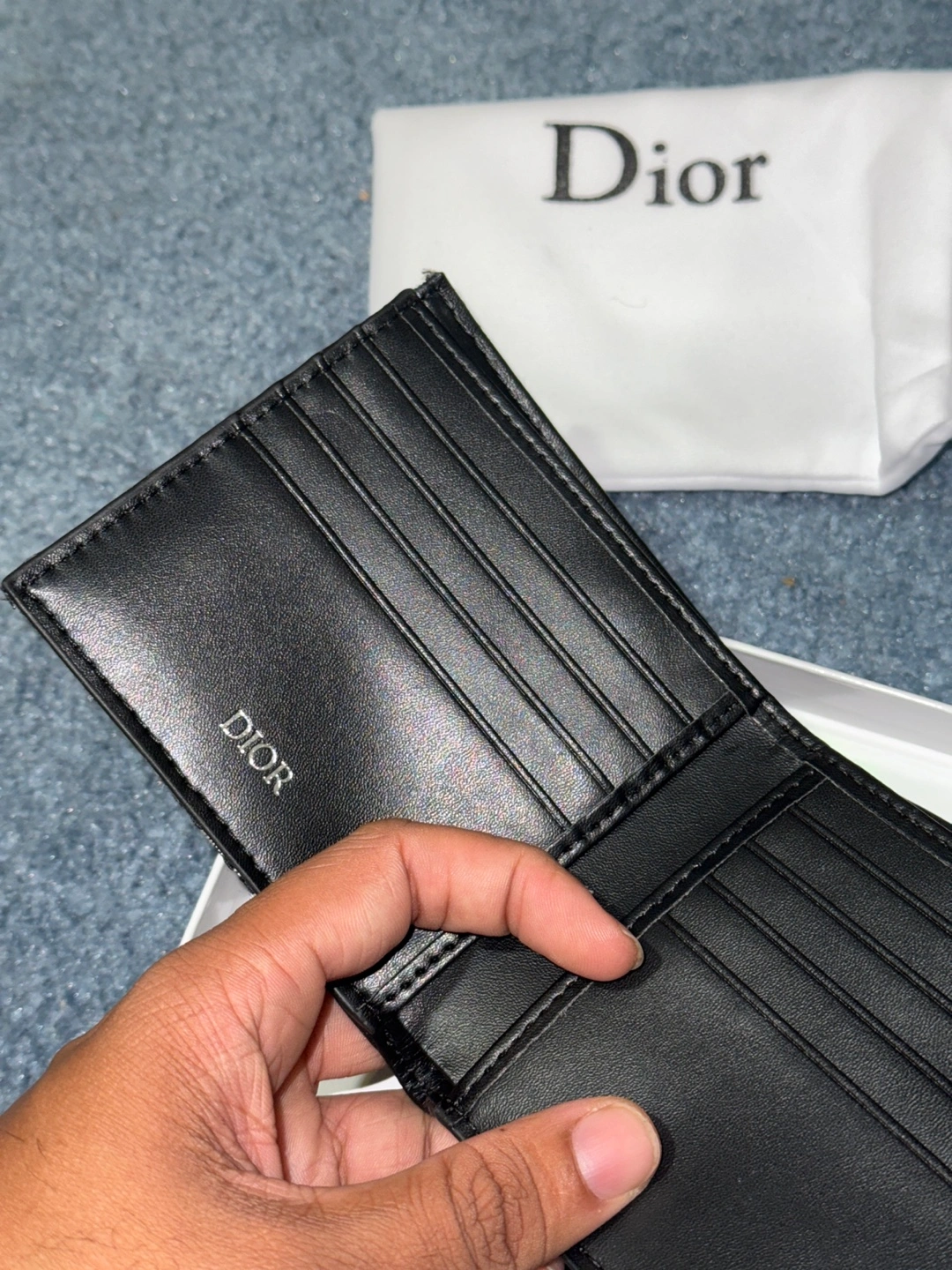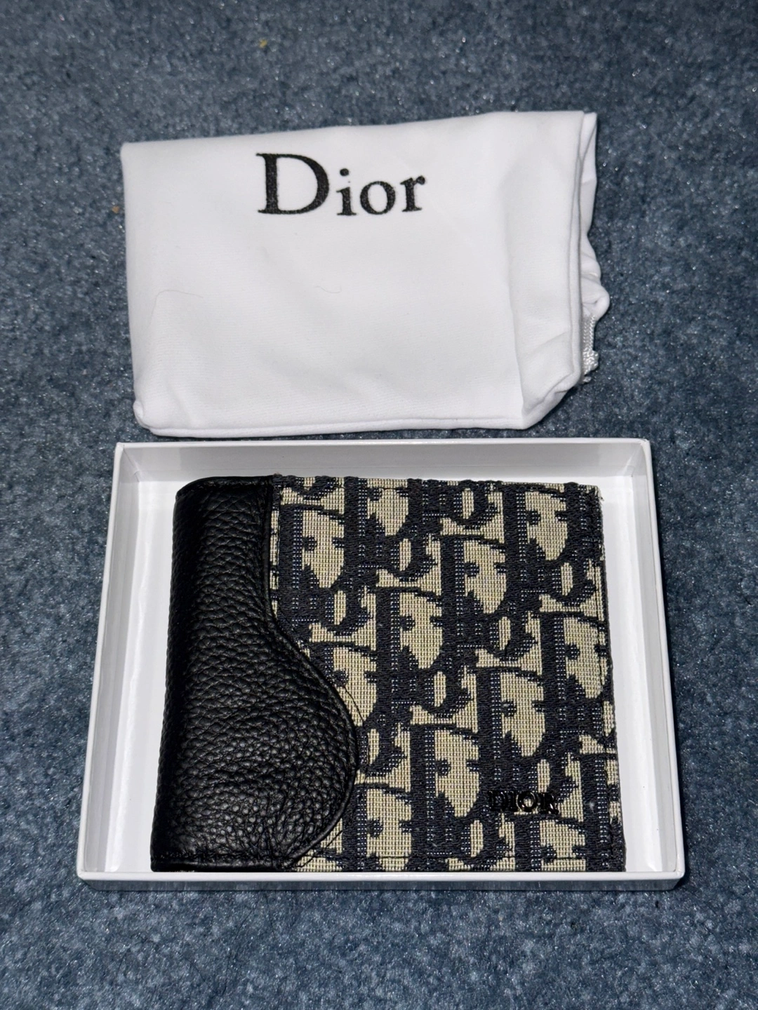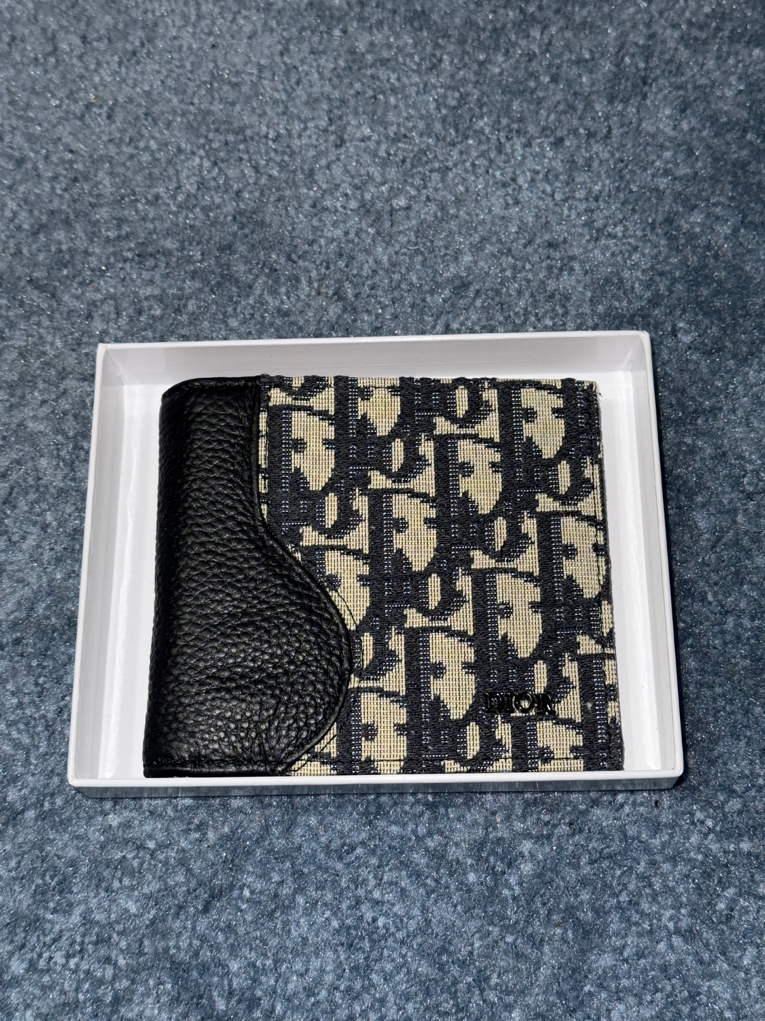 Black and beige wallet. Featuring interior card slots. The wallet is perfect to organize your cards and cash.
