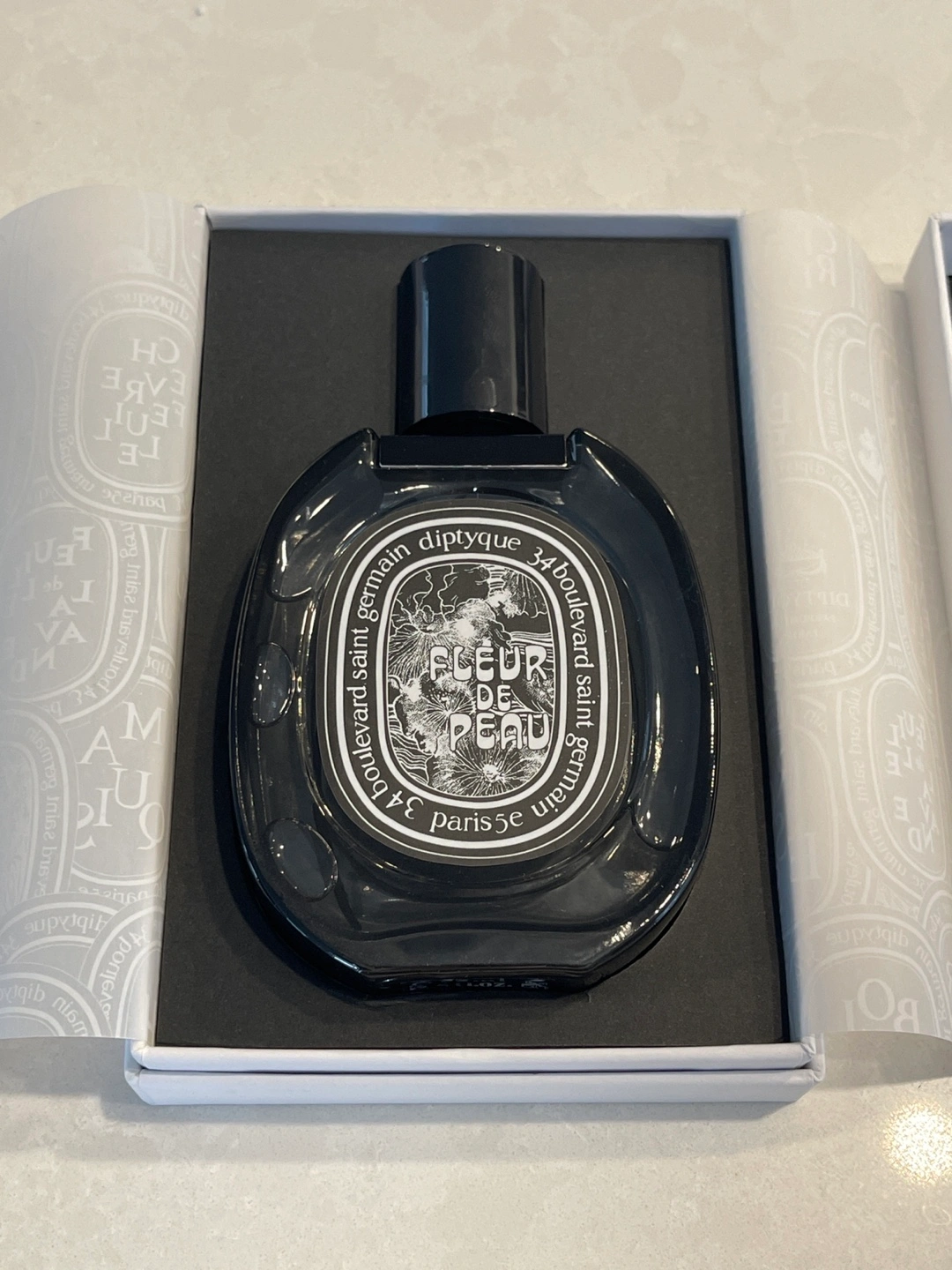 Selling a bottle of Diptyque Fleur de Peau Eau de Parfum. It contains 75ml / 2.5 fl.oz of the fragrance / perfume. The box is included!