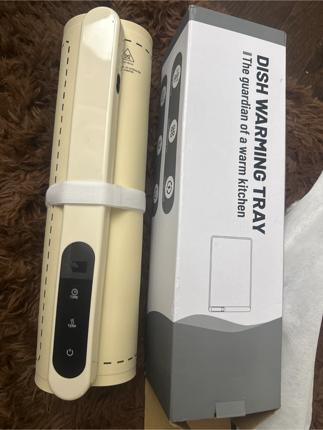 Selling a dish warming tray, still in its original box! It's designed to keep your dishes warm and ready to serve. The box says it's 'The guardian of a warm kitchen', which is a nice way to think about it