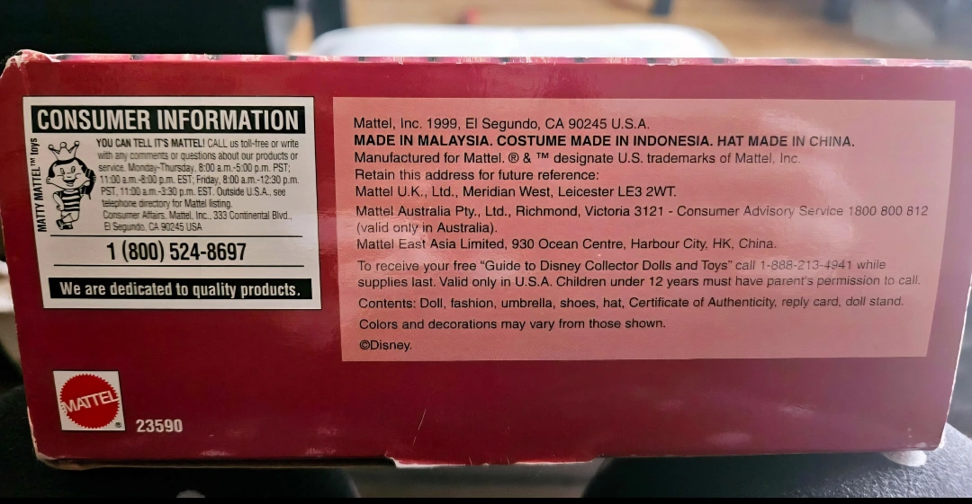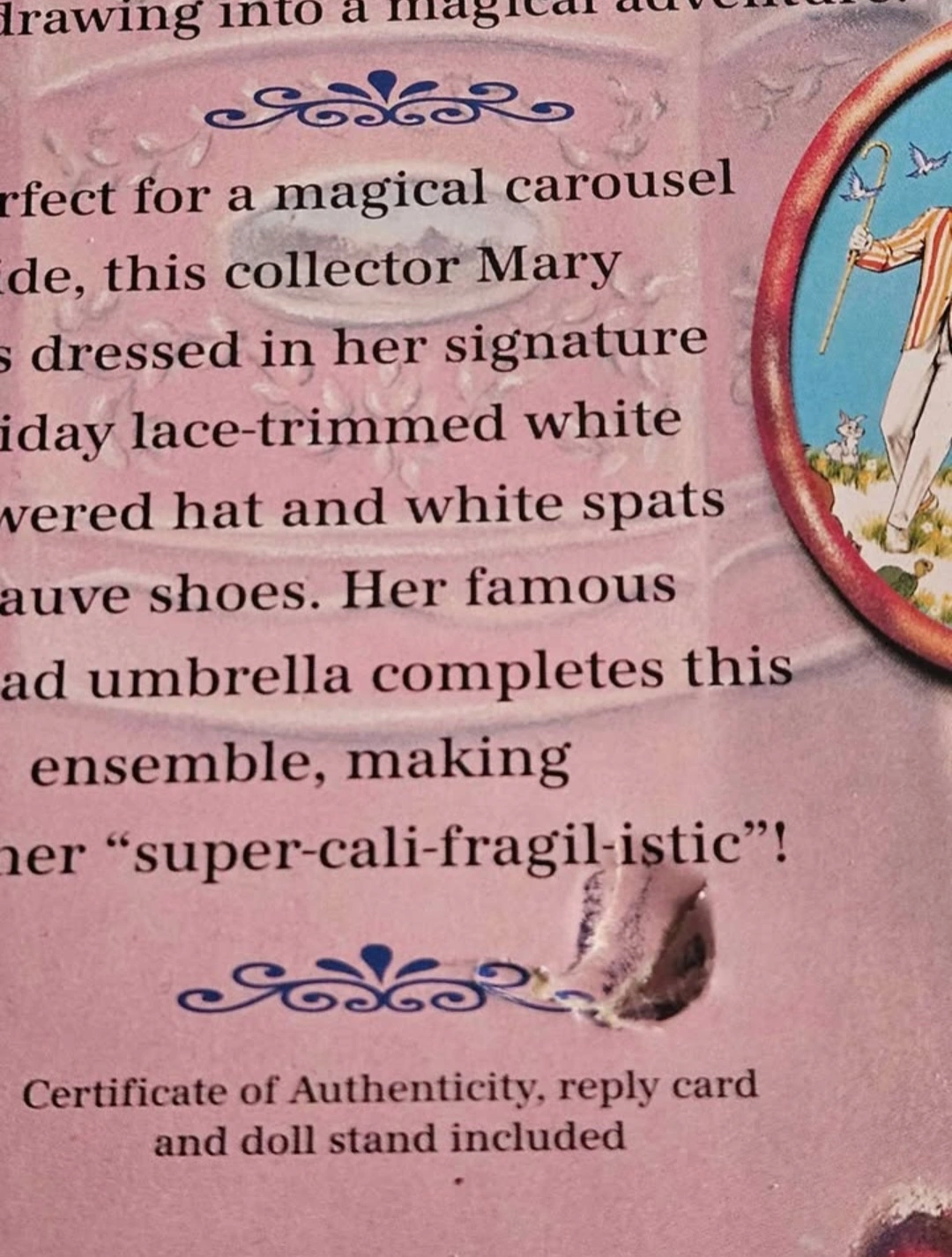 Selling a Disney Collector Doll, it's Mary Poppins in the Jolly Holiday Edition! This doll is for the adult collector over 14 years. Disney Mary Poppins Jolly Holiday edition doll 1999 Mattel, never taken out of box. Doll is in EUC, box is in good condition for its age, some wear and tear as shown in pics. Beautiful doll to add to any Disney fans collection. From a smoke free, pet friendly home in Woodstock. Cross posted.