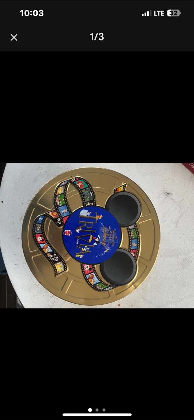 Selling a complete Disney Wonderful World Trivia Game! It comes with all the pieces, including the trivia cards, game board, player pieces, and the special Disney-themed dice. It's a great game for Disney fans of all ages!