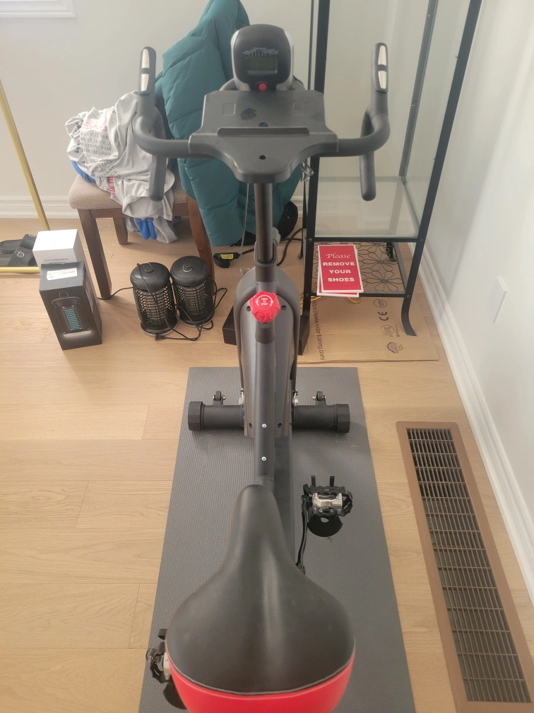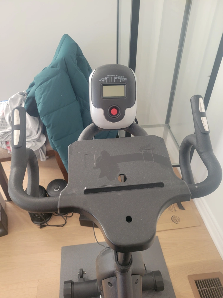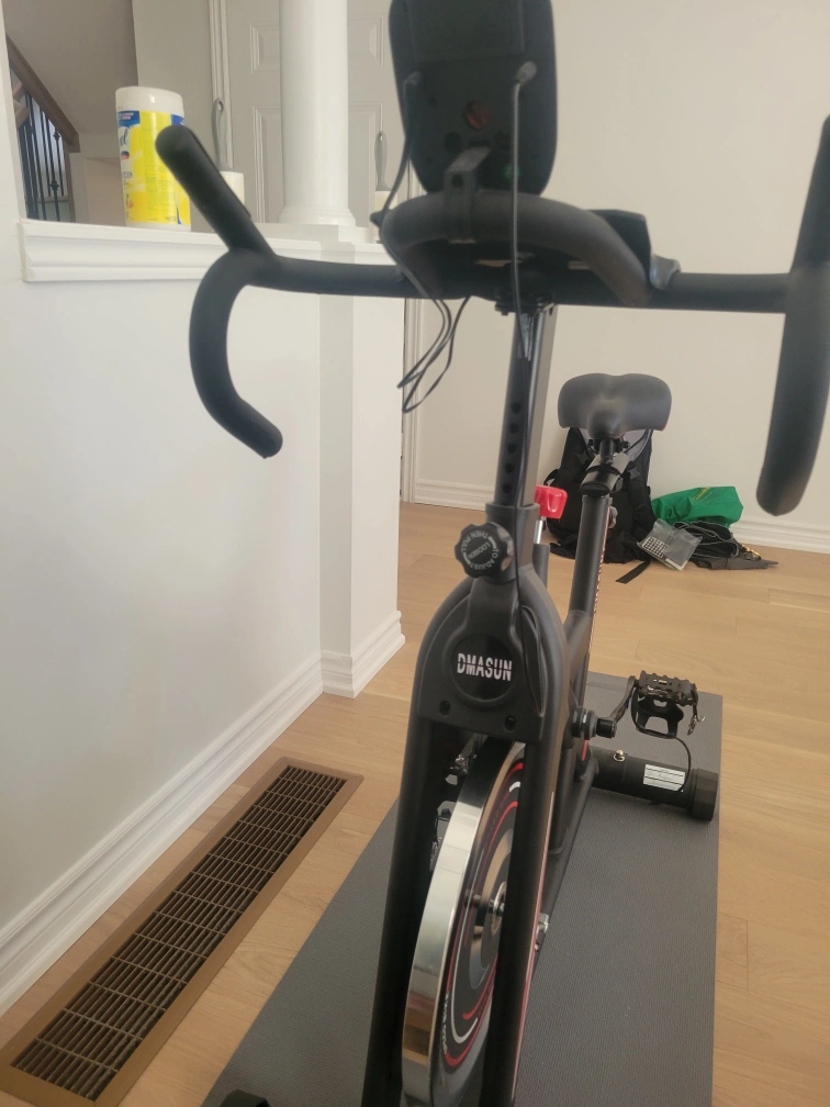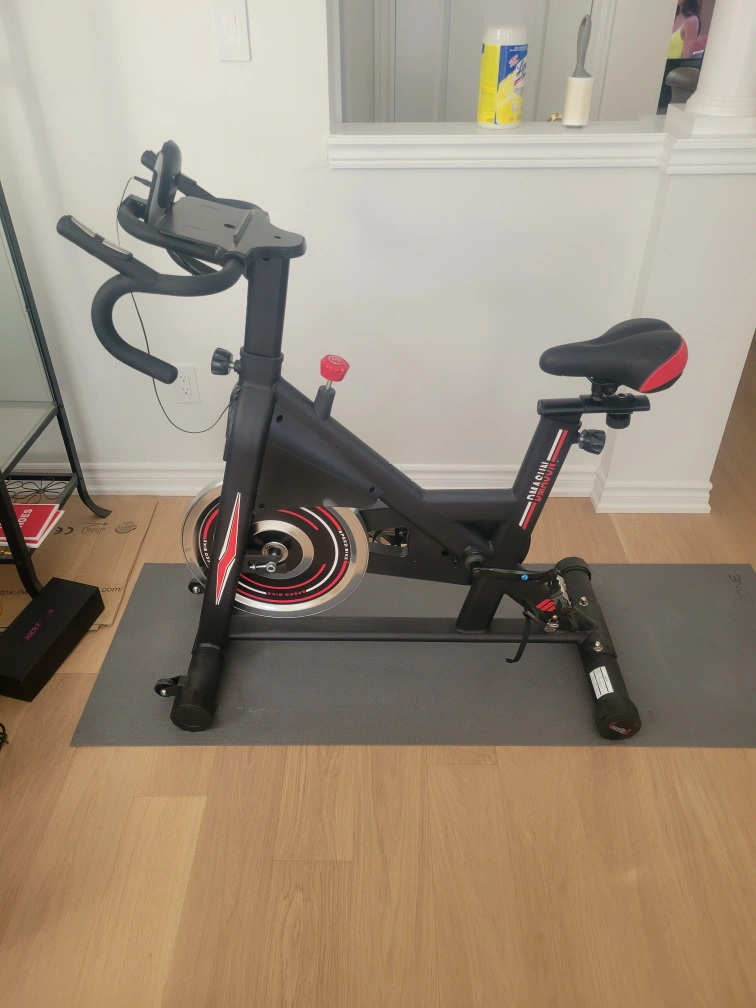 barely used Exercise Bike, DMASUN Classic Brake Pad Pro Stationary Bike for Home with 330 LB Capacity, Workout Bike with Comfortable Seat Cushion, Digital Display with Tablet Holder pick up at esso at 12338 Yonge St, Richmond Hill, ON L4E 0W5.
