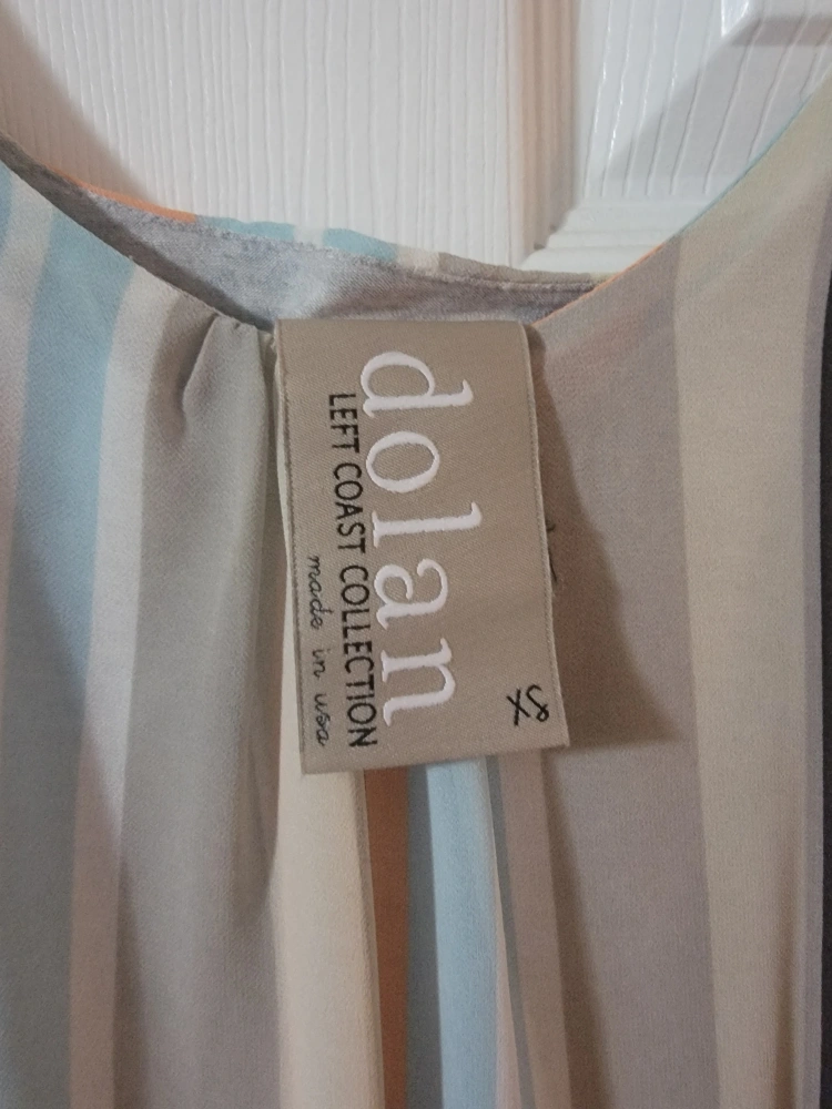 Selling a Dolan Left Coast Collection dress in size XS! It features a lovely striped pattern with colours like blue, beige, and peach. Perfect for a casual day out or a summer gathering. Made in the USA!