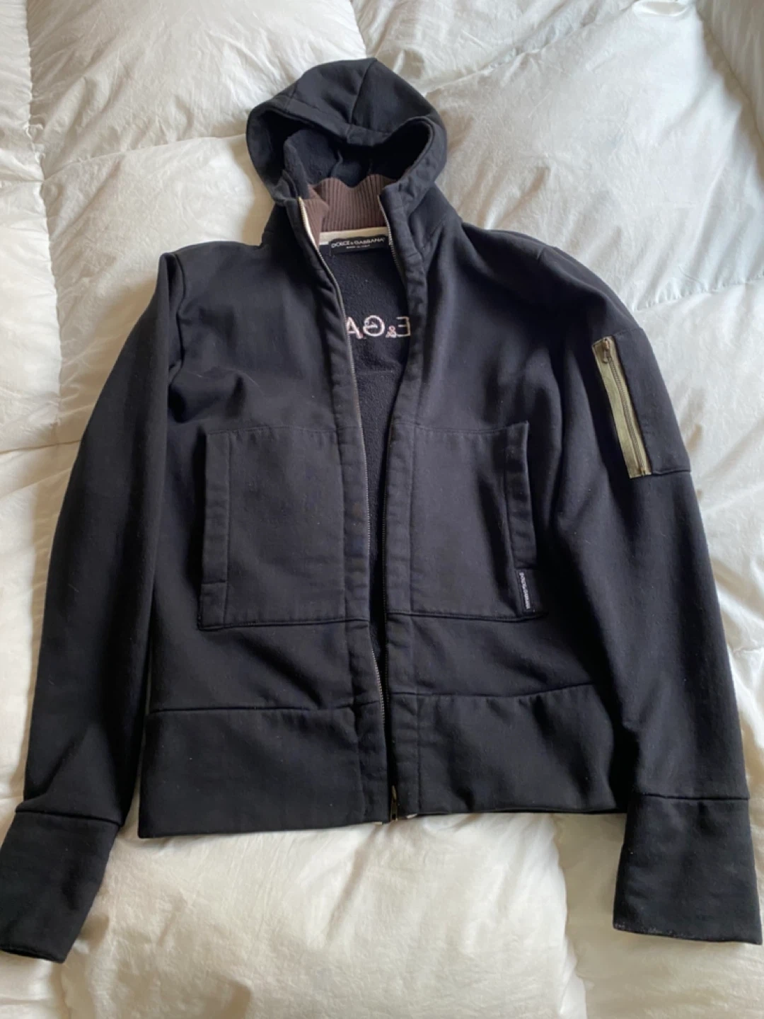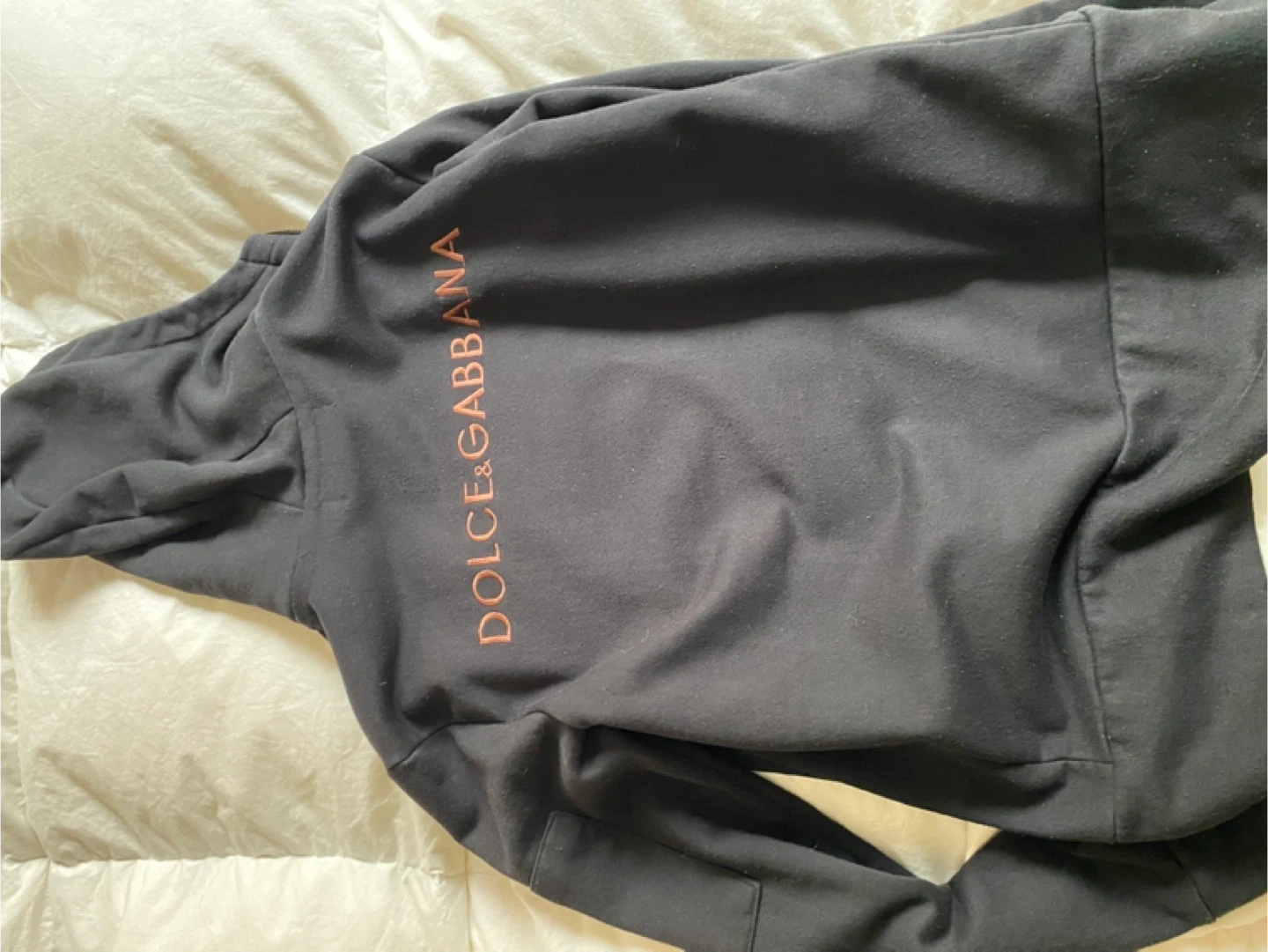 Dolce & Gabbana black hoodie in size 48. It's in great condition and ready for a new home! The material is soft and comfortable, perfect for everyday wear. The hoodie features a stylish design with the brand's logo on the back. Don't miss out on this fashionable piece!