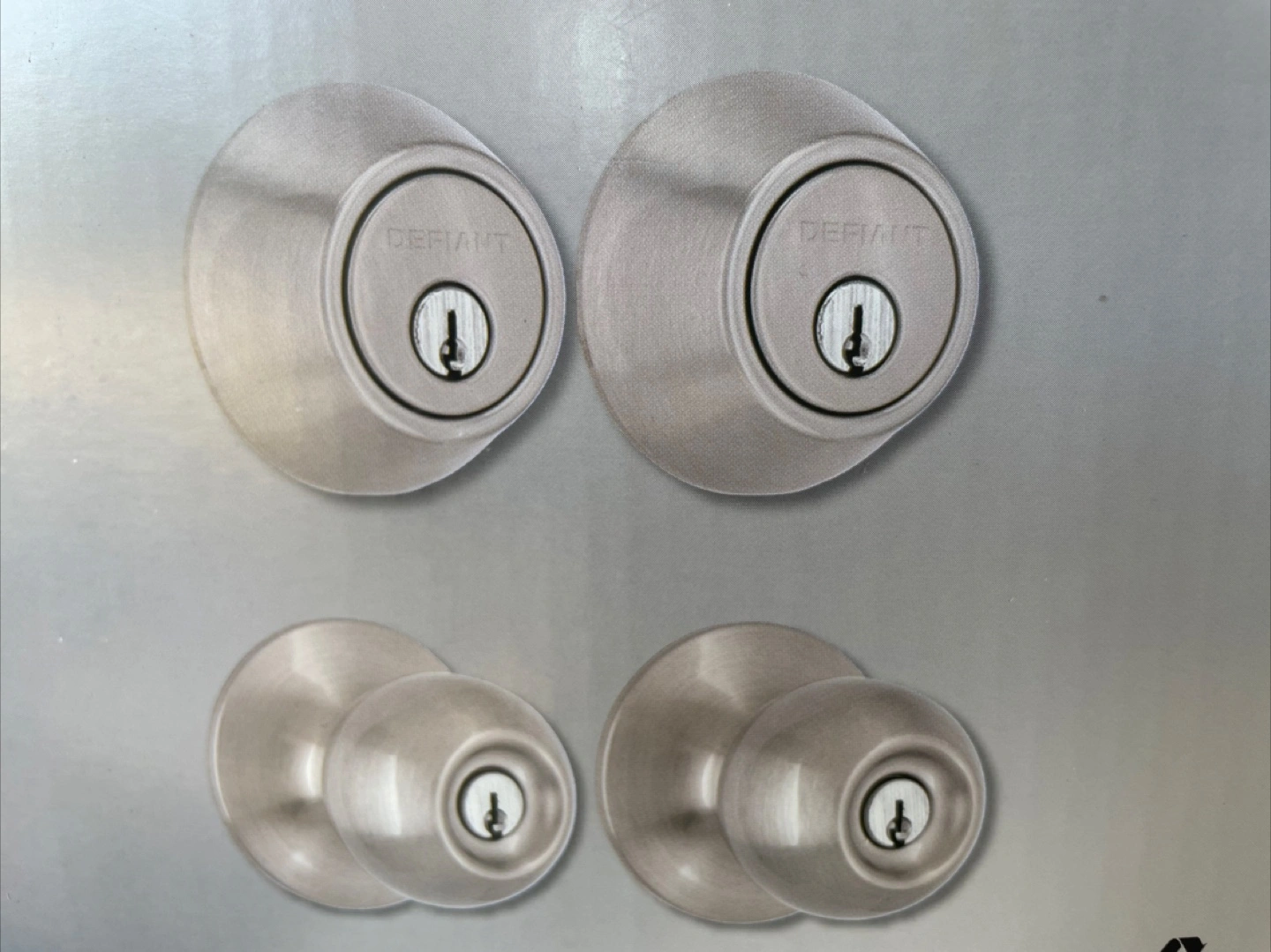 Selling two door knob and deadbolt lock sets. Great for adding security to your home. Regular price $90. **Pick up only**