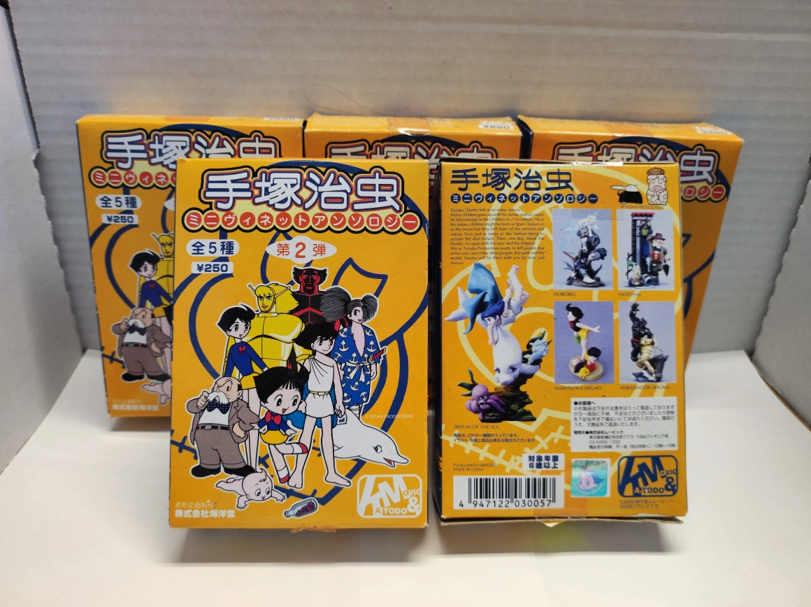 Selling a set of mini figures featuring Doraemon and characters from Tezuka Osamu's works! These are collectibles, still in their original packaging. A fun addition to any collection or a cute display item for fans of these classic characters