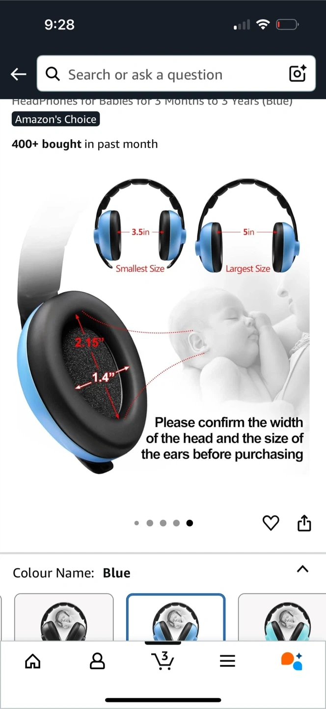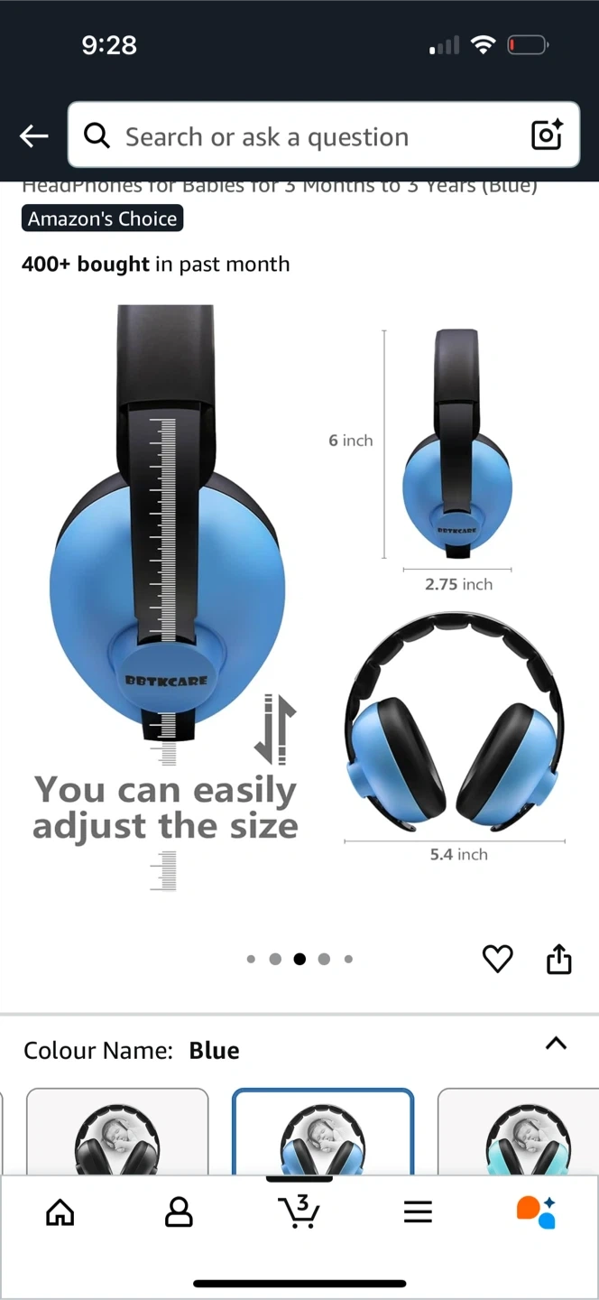 Keep your little one protected from loud noises with these DOTKCARE baby headphones! These are great for babies aged 3 months to 3 years. The colour is blue and the size is adjustable. They are designed to keep out noise and help your baby sleep, with zero pressure on their ears. Dimensions include: 6 inch height, 2.75 inch width, and 5.4 inch depth