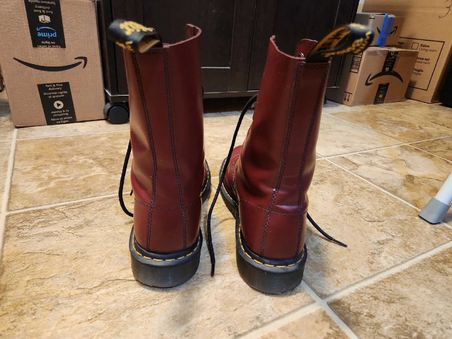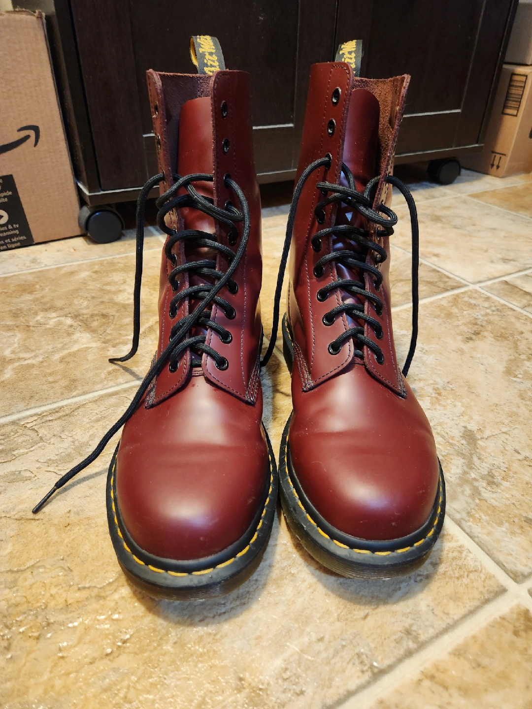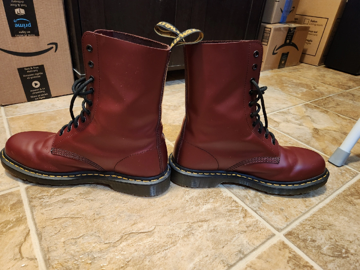 Selling a pair of Dr. Martens 1490 boots in a cherry red colour. These are a size US 11. They're excellent shape and ready for a new home! Never broken in. Price Firm. Pick-up Only. Cash Only