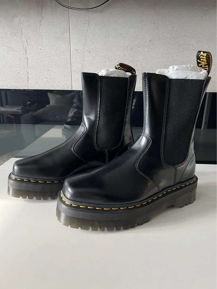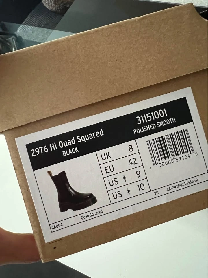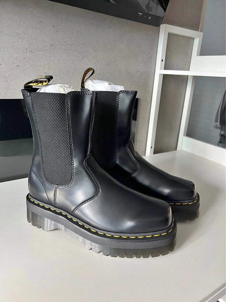 Brand new, never worn — comes in original box. Sleek polished smooth leather with chunky Quad Squared sole and classic yellow stitching. Unisex style (Men’s 9 / Women’s 10). Stylish, durable, and built with Dr. Martens’ signature comfort and edge.