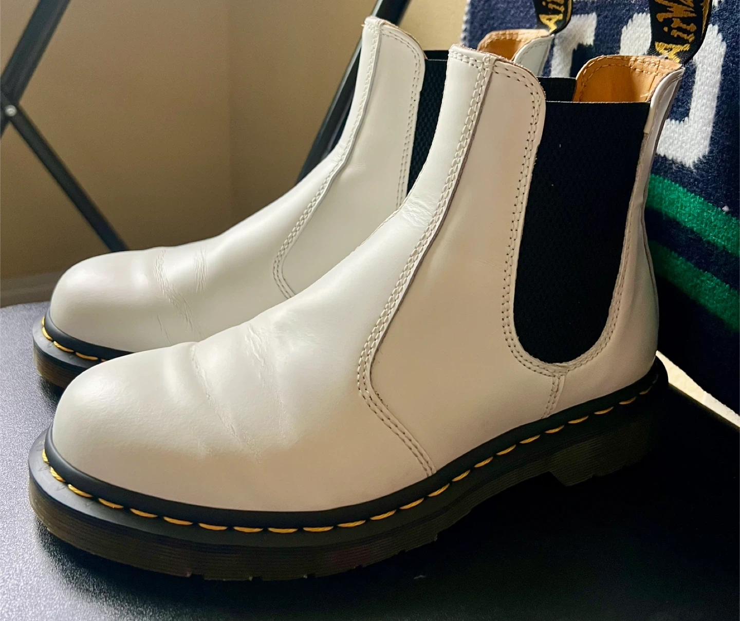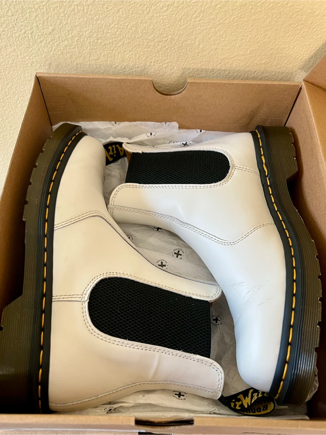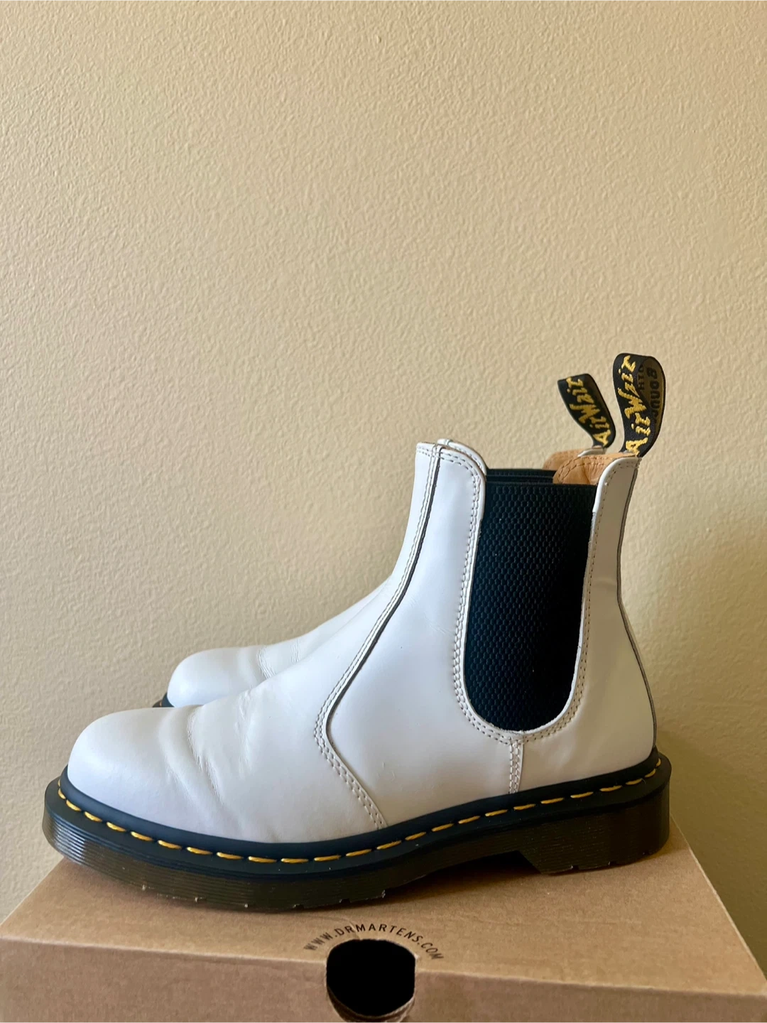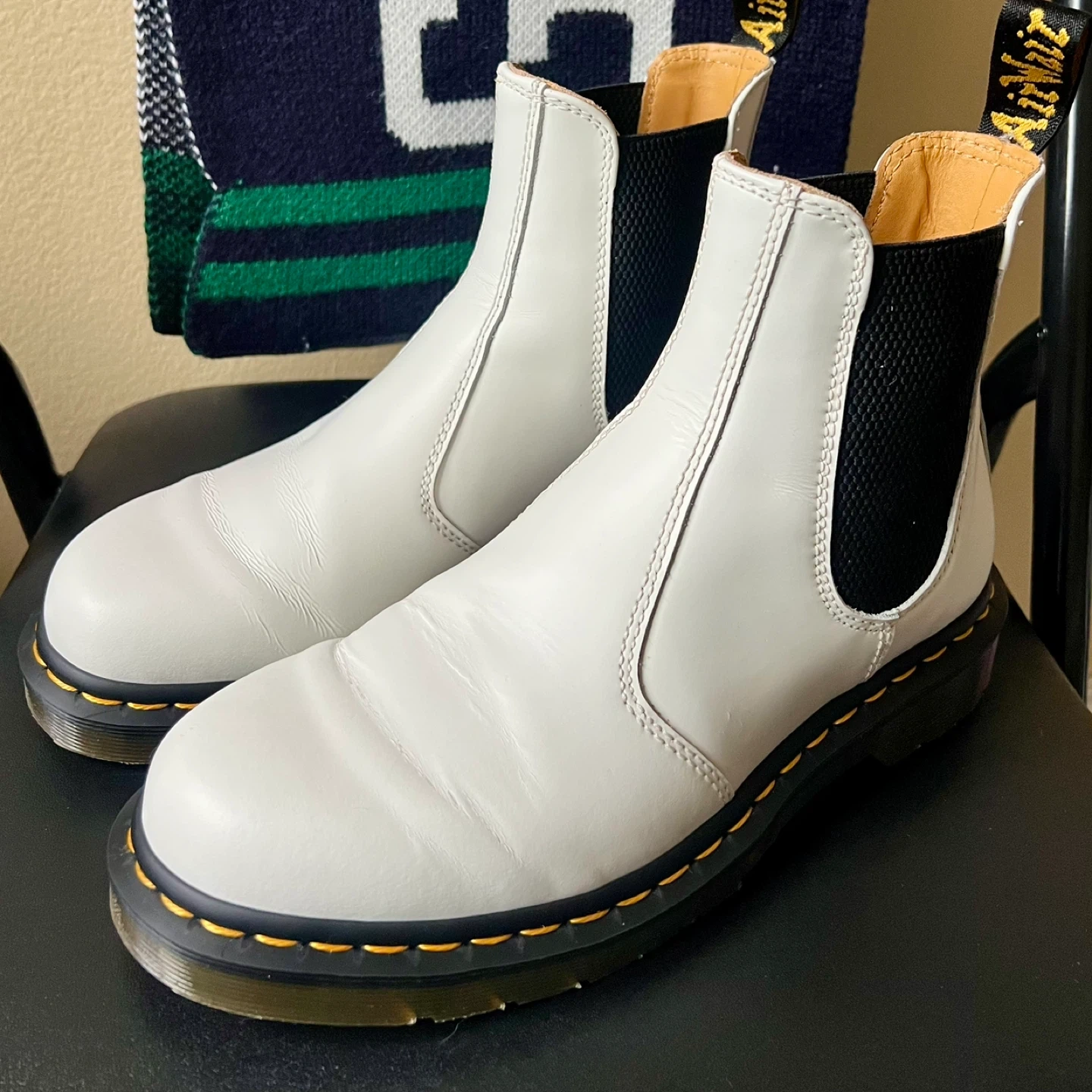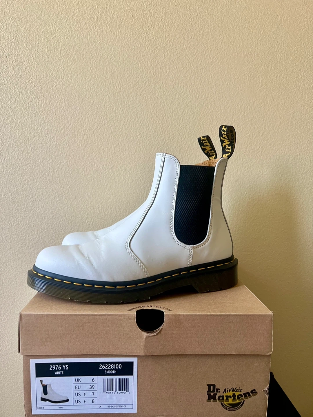 Selling a pair of Dr. Martens 2976 YS Chelsea boots in white! They are a US size Men’s 7 / Women’s 8. These stylish boots are in great shape and come with the original box. Perfect for adding a bit of edge to your wardrobe!